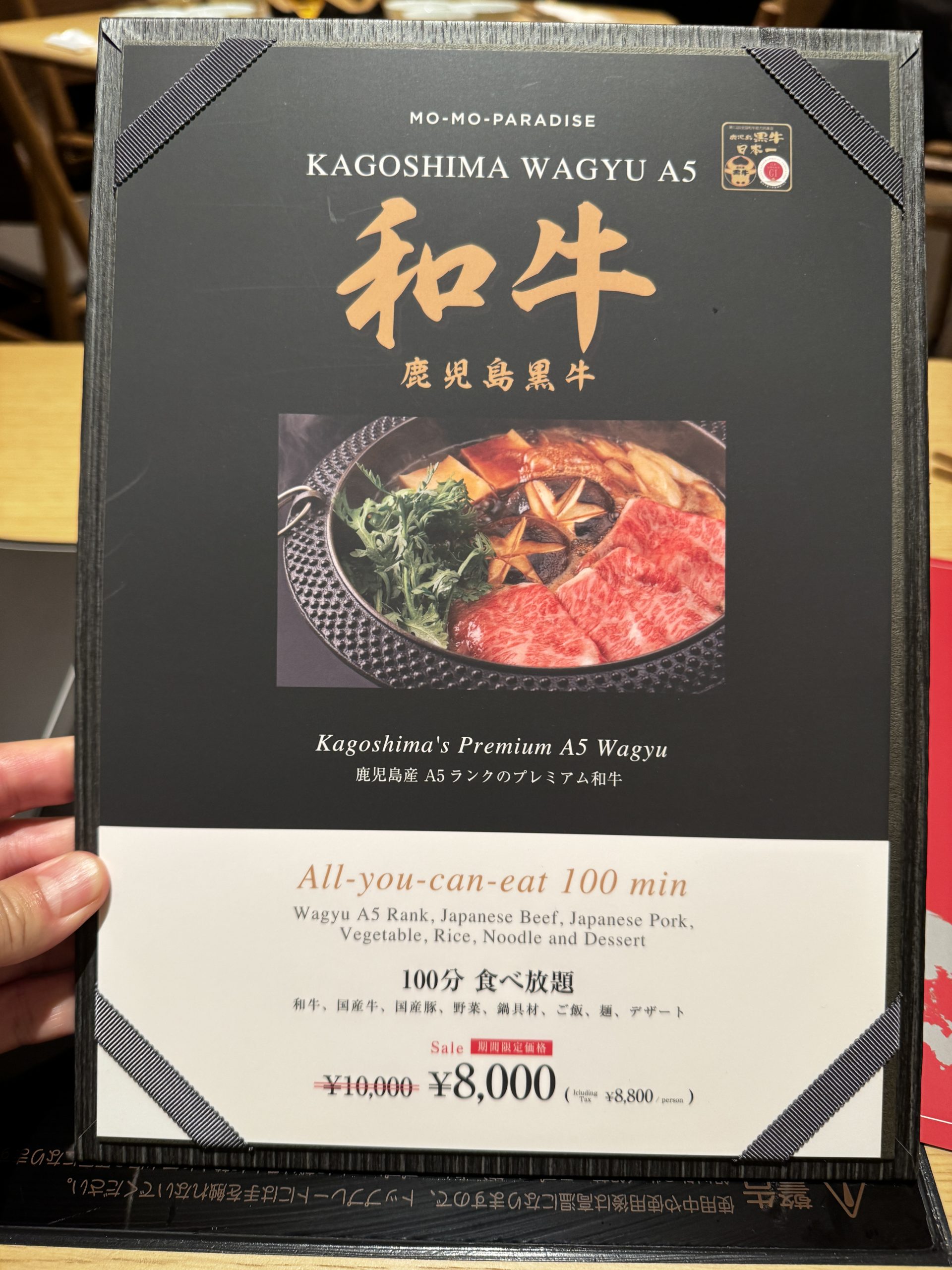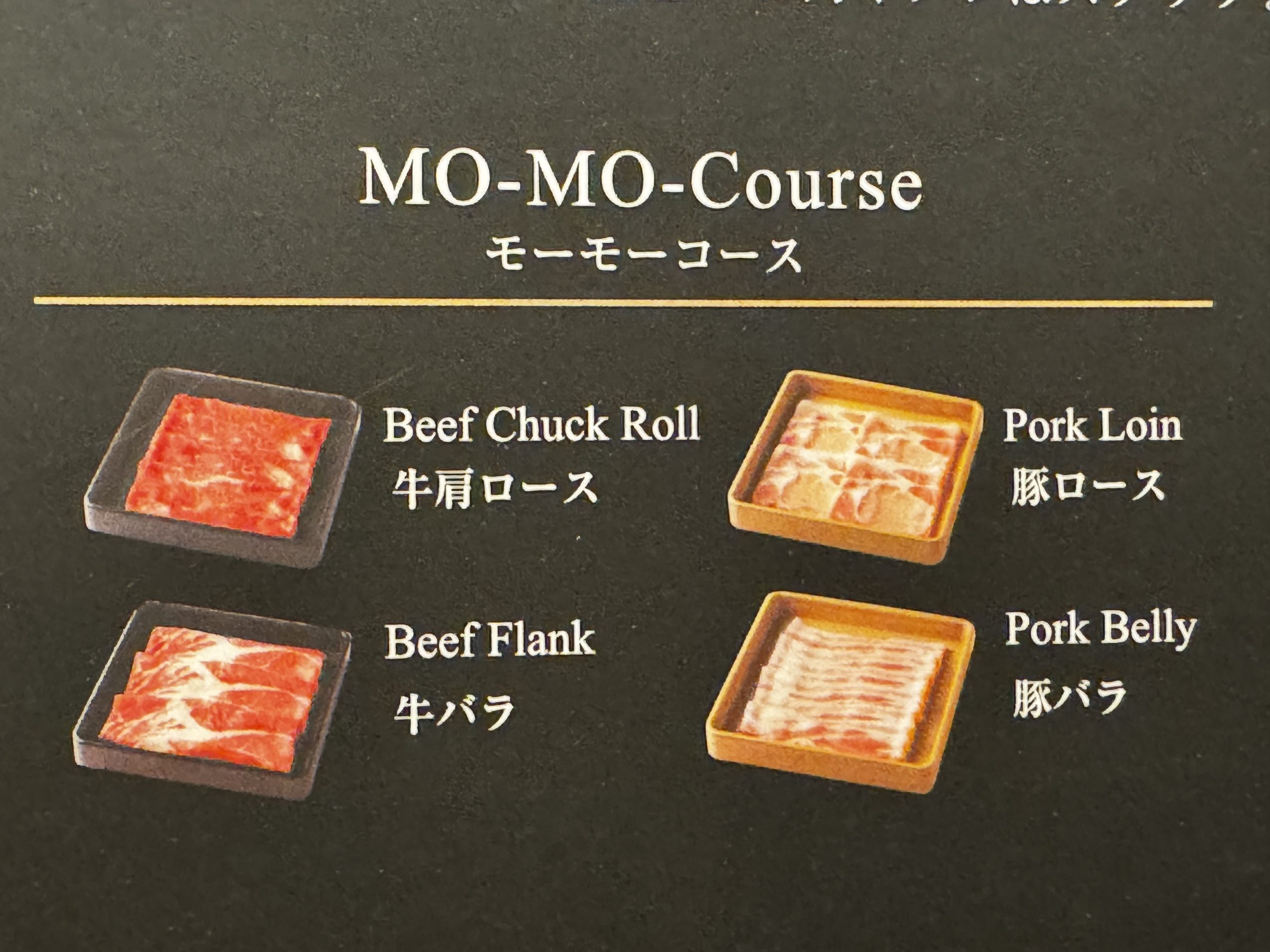 今回は「MOMOコース」(税込4620円)をオーダー。もっとリッチなコースもあったが、とにかくいちばん安いコースばかり食べていた25年以上前のことを思い出し、いちばん安いMOMOコースにした。ちなみに、ランチタイムはもっと安い価格で「MOMOコース」(税込3850円)が楽しめるし、食べ放題ではない肉のセットメニューもある。