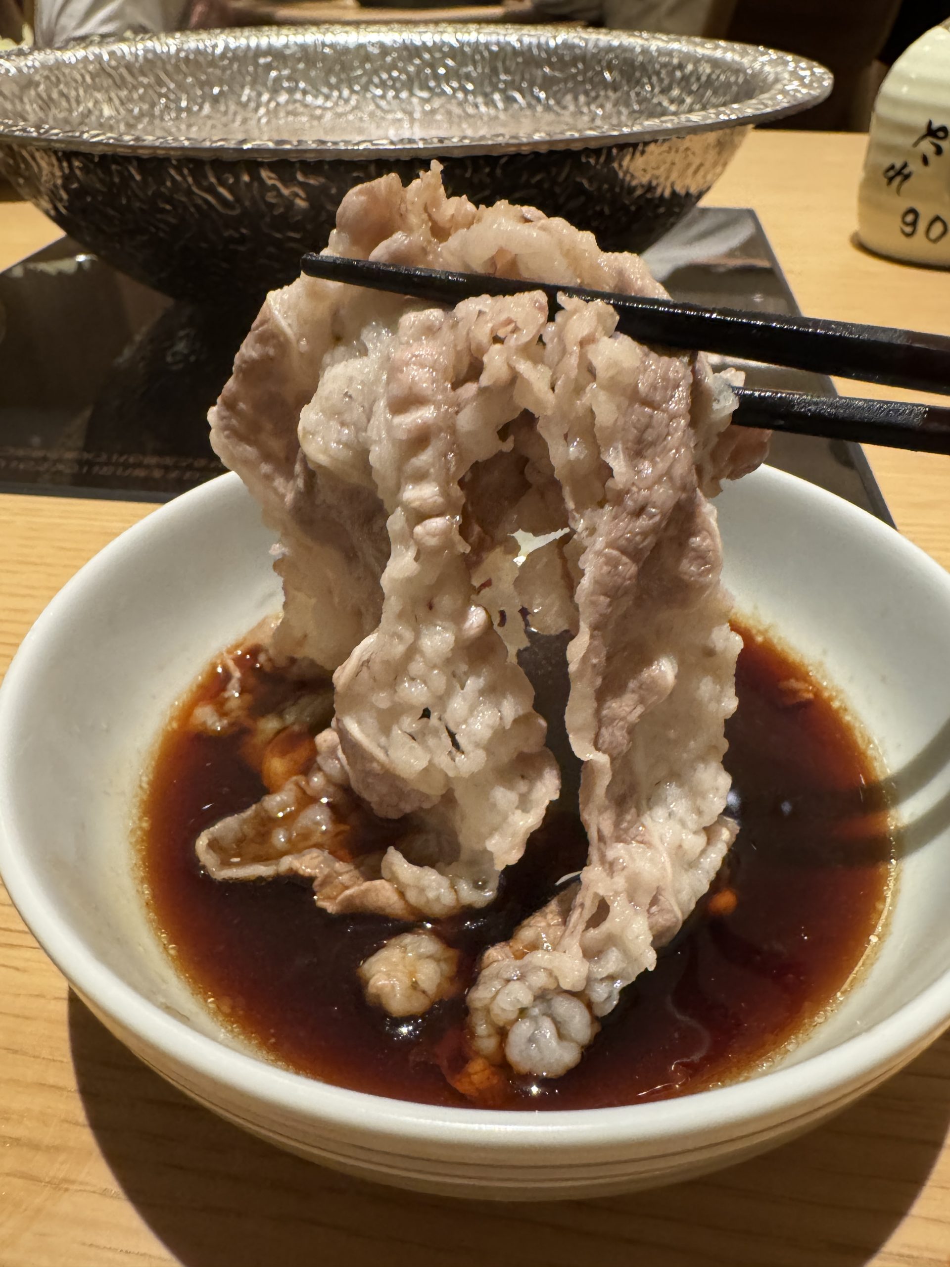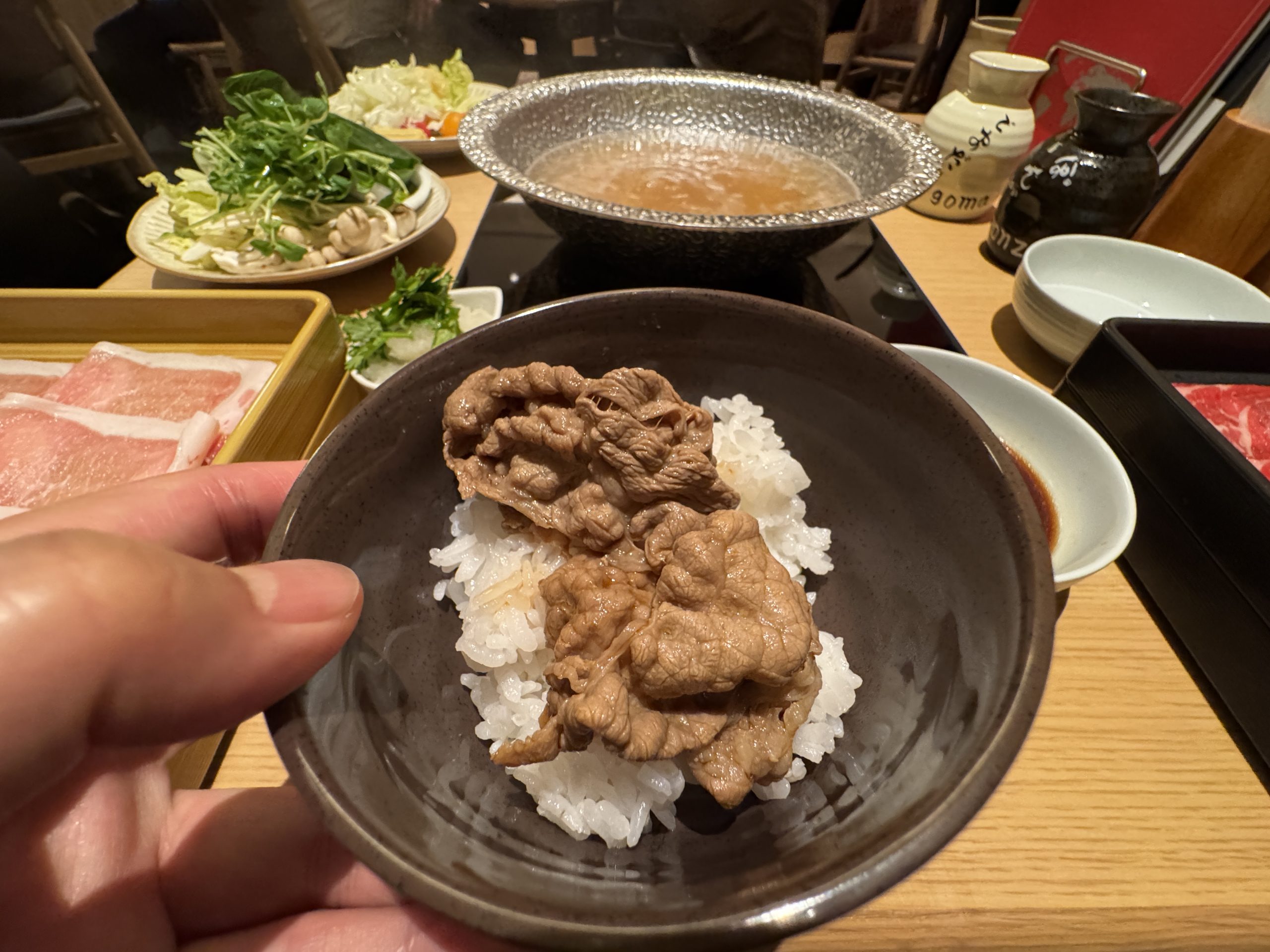 特に筆者がオススメしたいのは、たっぷりと赤身に旨味が含まれている牛肩ロース。これをポン酢に浸し、ライスにワンバウンドしながら食べ進める。最高オブ最高。