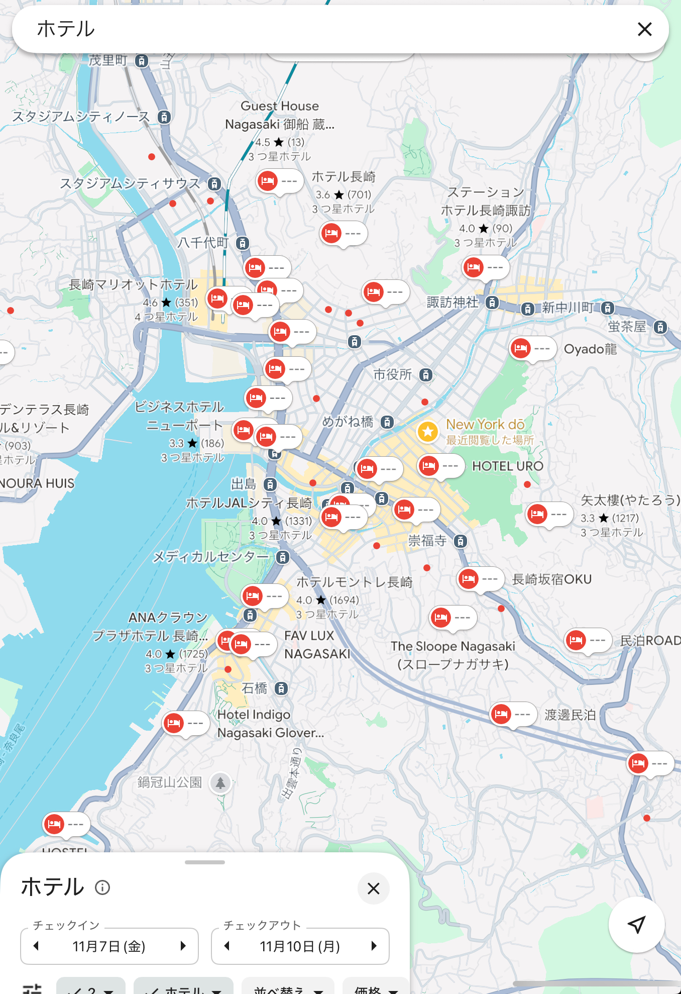 8月30日時点で、該当日程の長崎駅周辺のホテルは最低でも2万円前後となっているようです。
