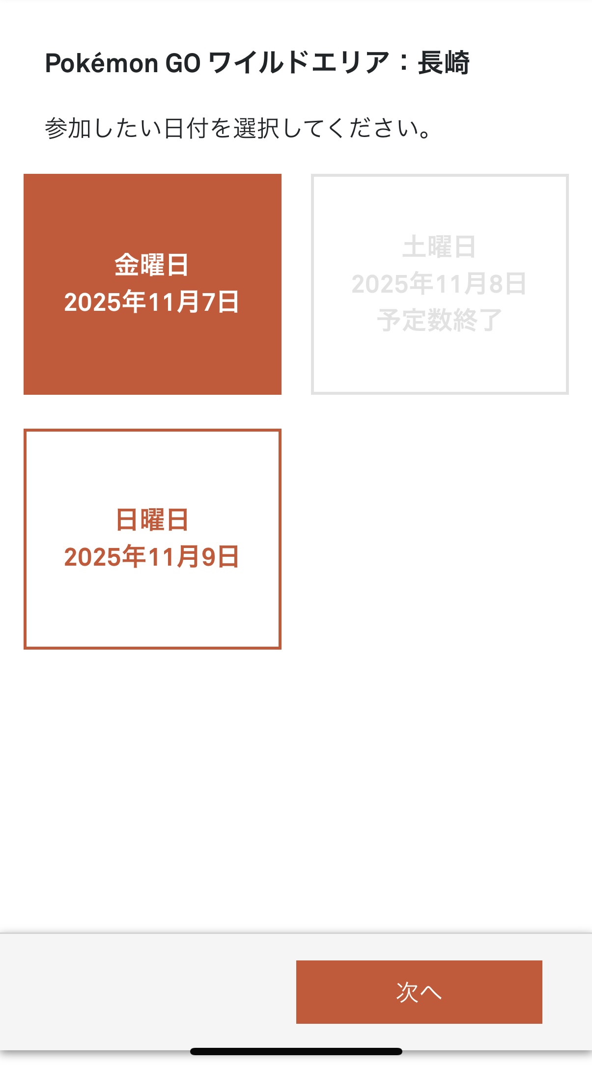 長崎ワイルドエリアの参加チケットは、「Pokémon GO Fest」のチケットと同じように、参加希望日を選択した後、希望の追加オプションを購入していく方式。