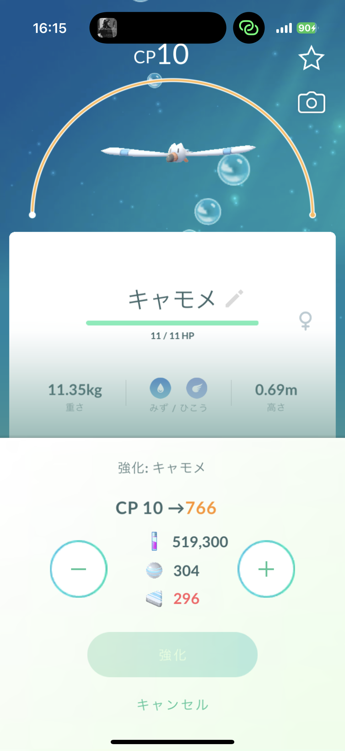 ▲通常のポケモンは初期CPから強化しても300個前後ずつ。