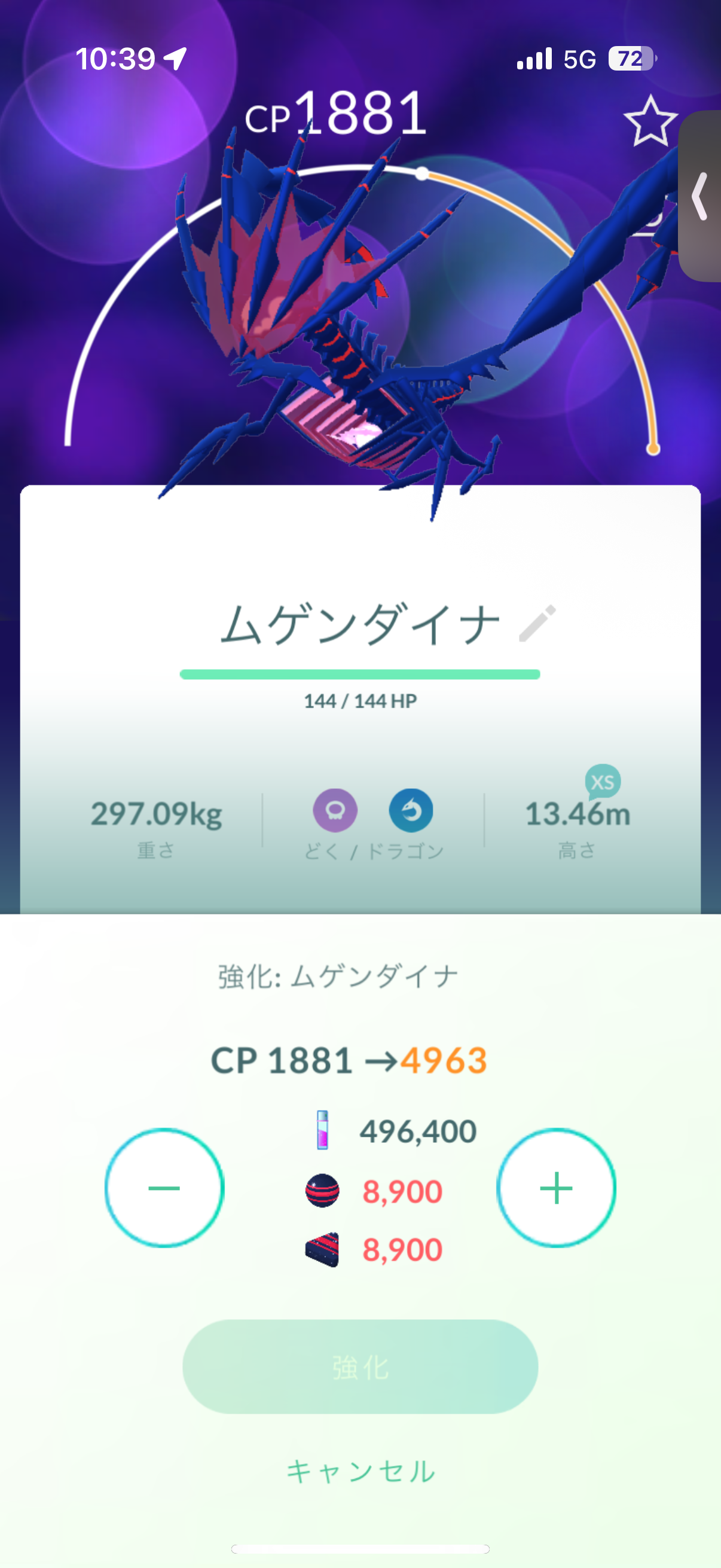ムゲンダイナの強化に必要なアメの量は、PL40までで8900個、そこからPL50まで強化するのにアメXLが8900個となります。