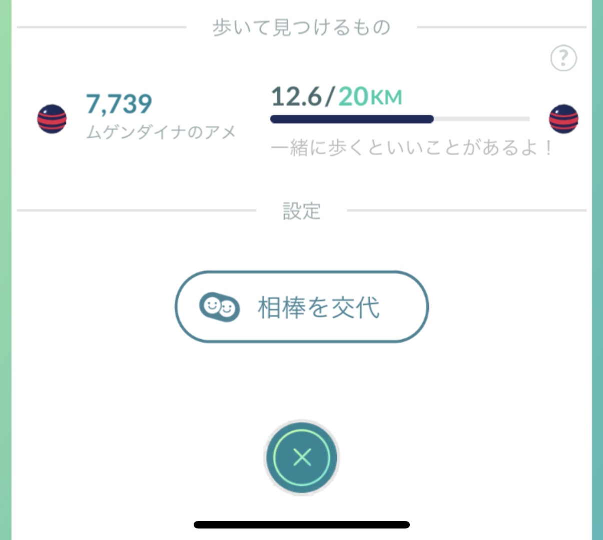 ムゲンダイナを相棒に設定して1回アメをもらうには、他の伝説のポケモンなどと同じく20kmが必要。