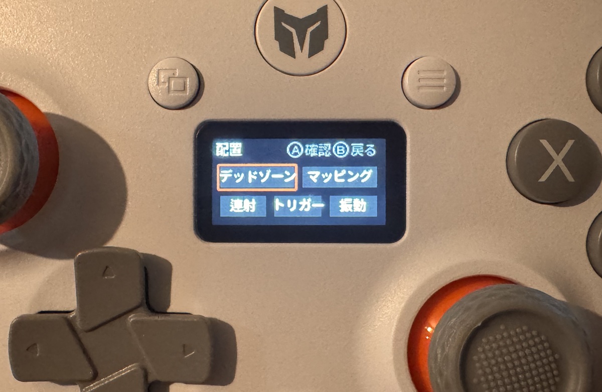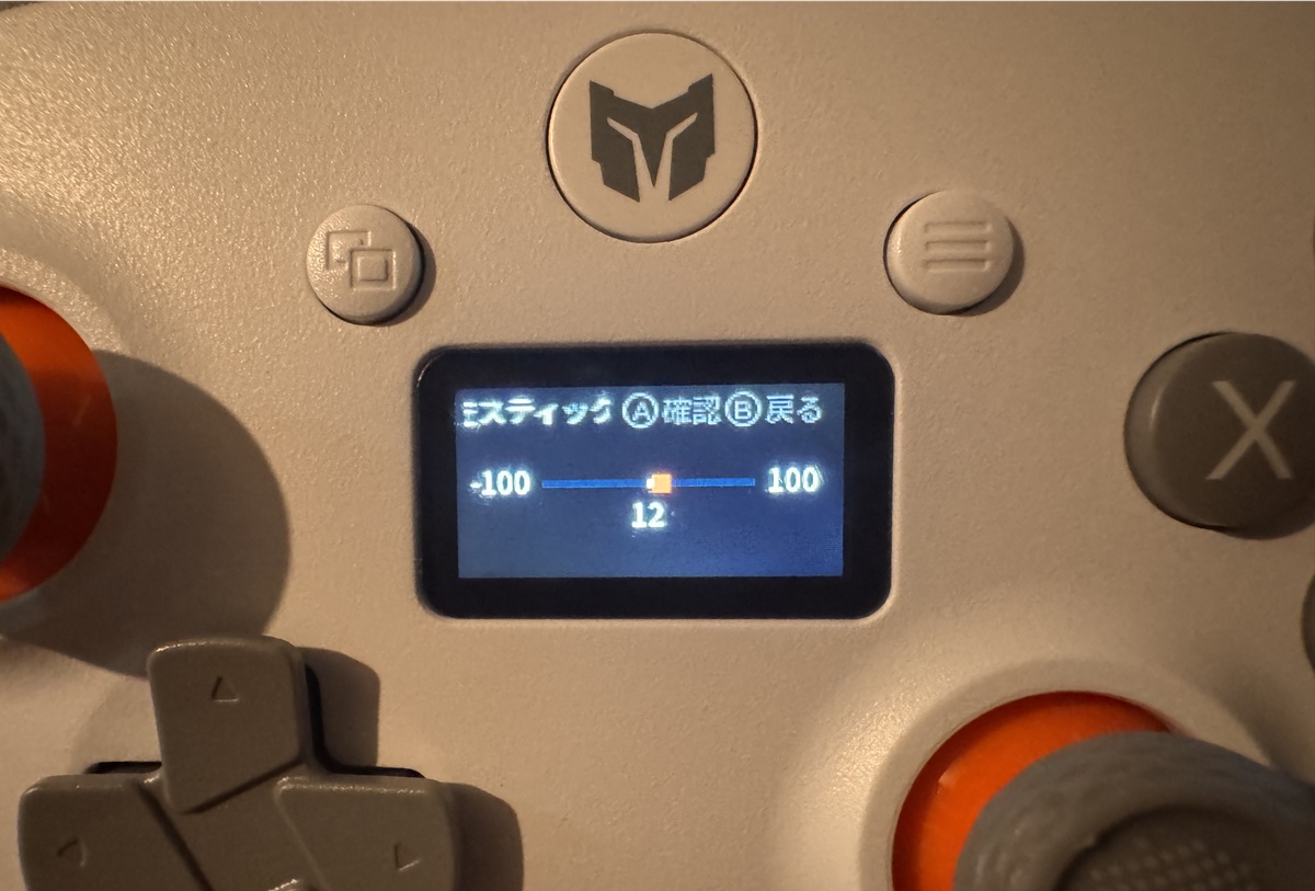 ▲デジタルデッドゾーンの初期設定は12(今回開封時)。気になるひとはそこから十字キーで好みのポイントに変更しよう。さらにメニューボタンとビューボタンを同時長押しをするとキャリブレーションの調整も可能。1度で好みのものに合わない場合は何度か試してほしい。