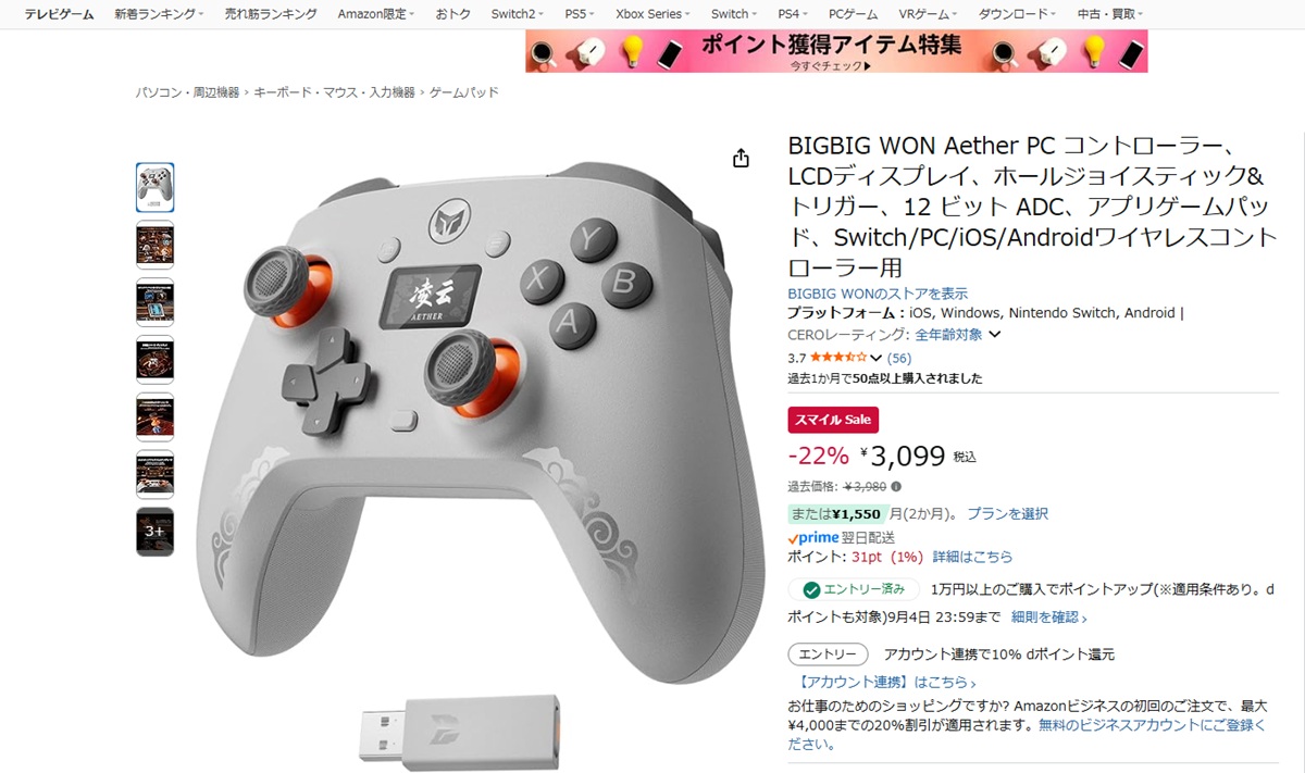 複数のプラットフォームに対応したゲームの周辺機器を開発販売する中国の企業MOJHON(旧BIGBIG WON)が、2025年3月に“Aether”という格安モデルのコントローラー(Windows/Switch/iOS/Androidなど)をリリース。