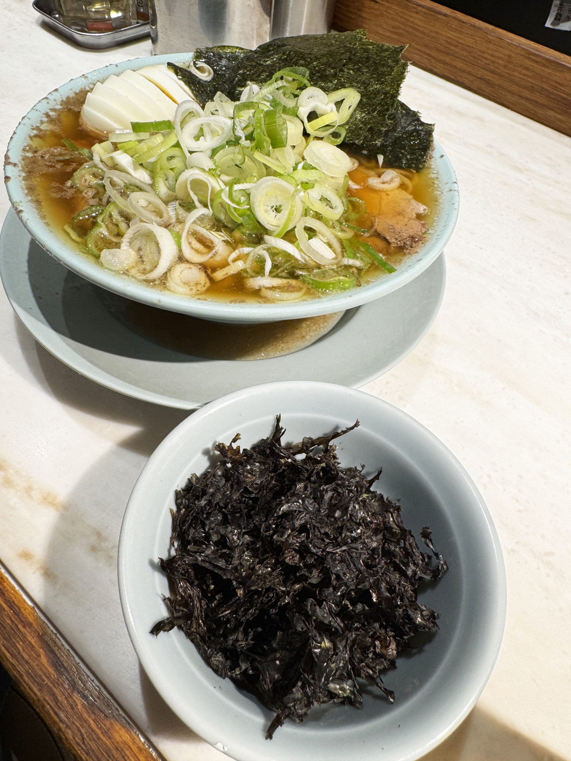 中華そばネギ盛りノリ足し岩ノリ足し玉子