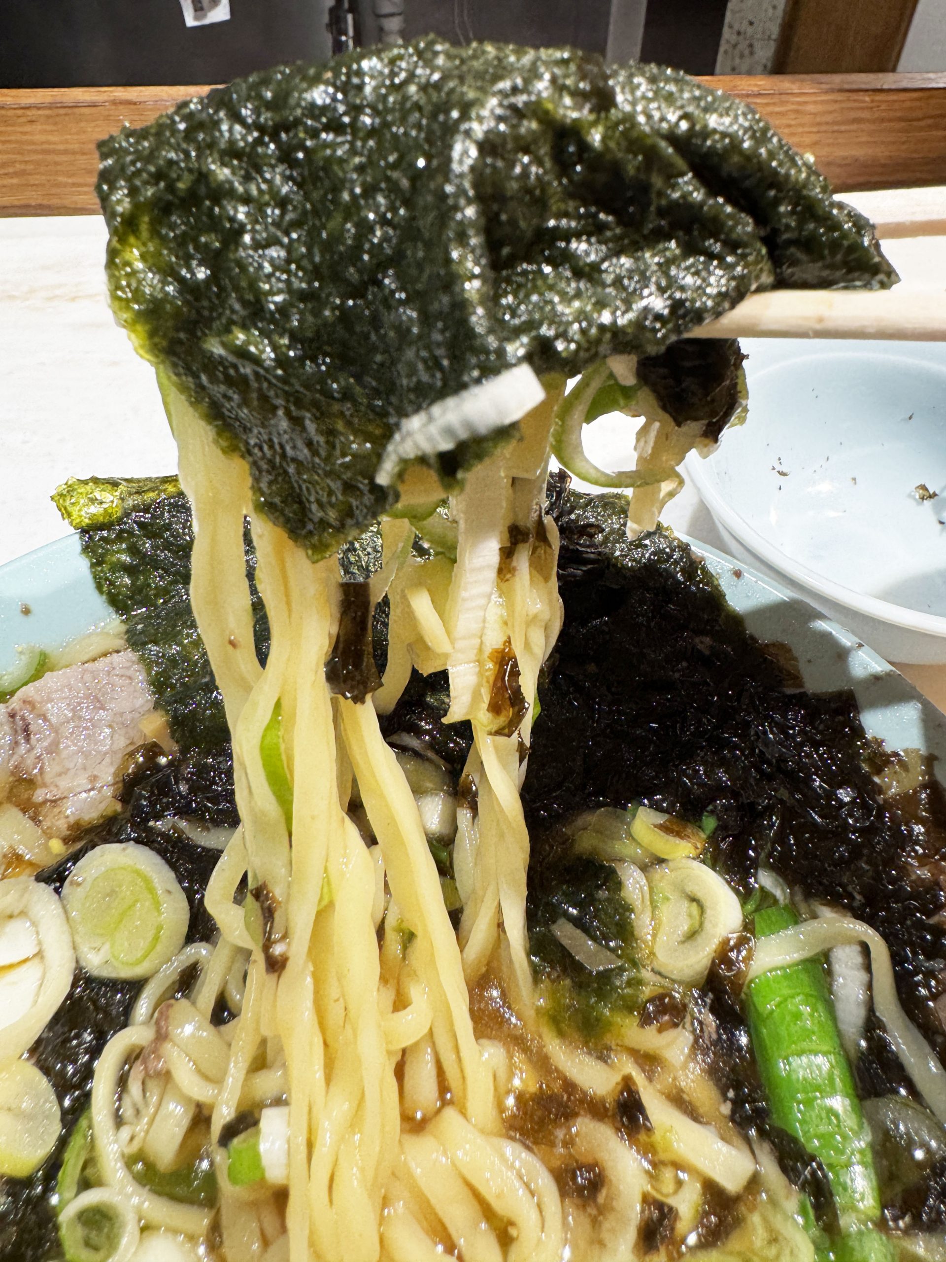岩ノリを麺にまとわせ、ノリで包んでズズッとすするように食べる。これがもう、至高。ノリと岩ノリのダブルノリの相乗効果により、ただでさえおいしい「ちえちゃんラーメン」のテイストが絶品テイストにメガ進化してブチ上がる。