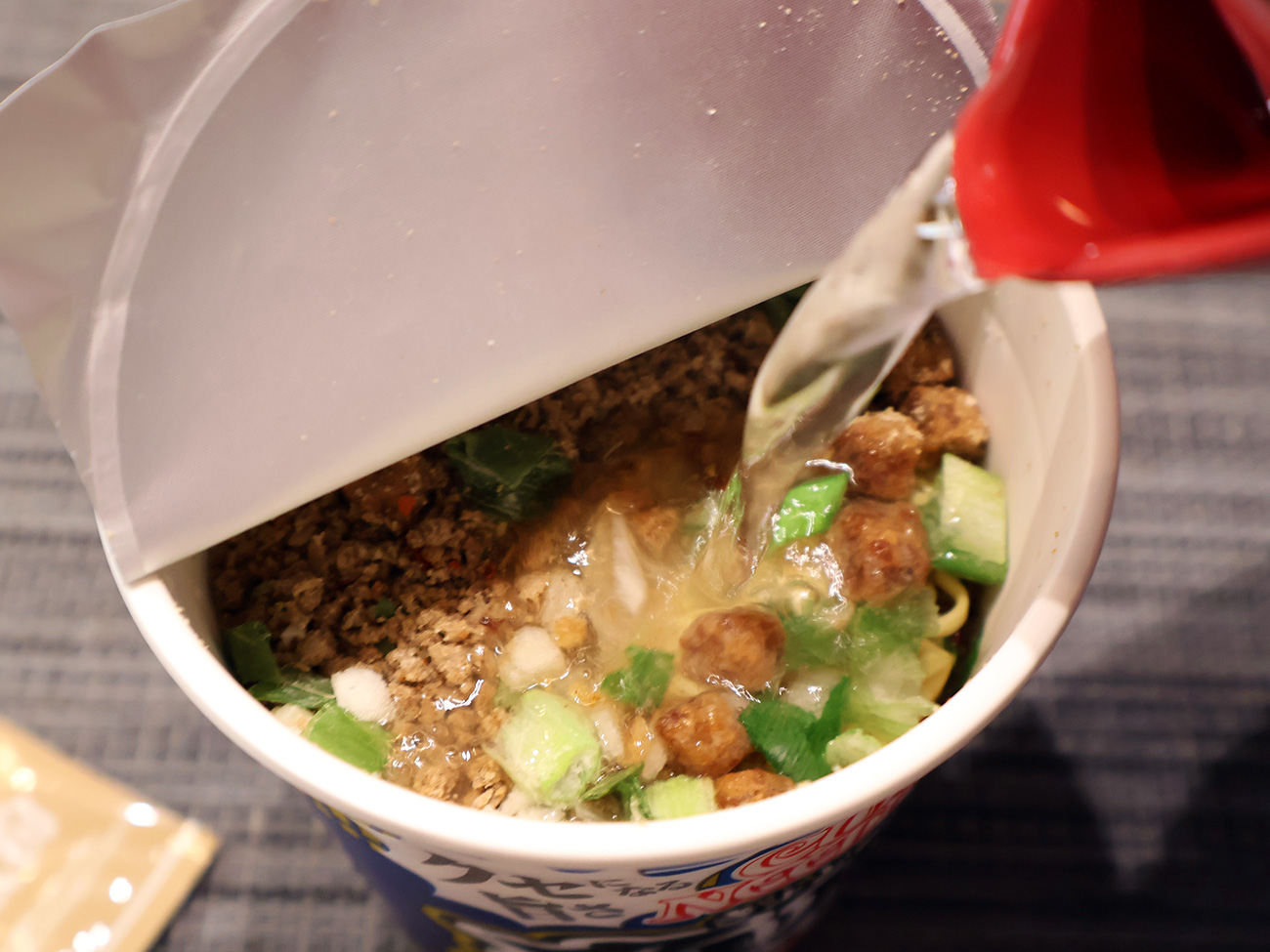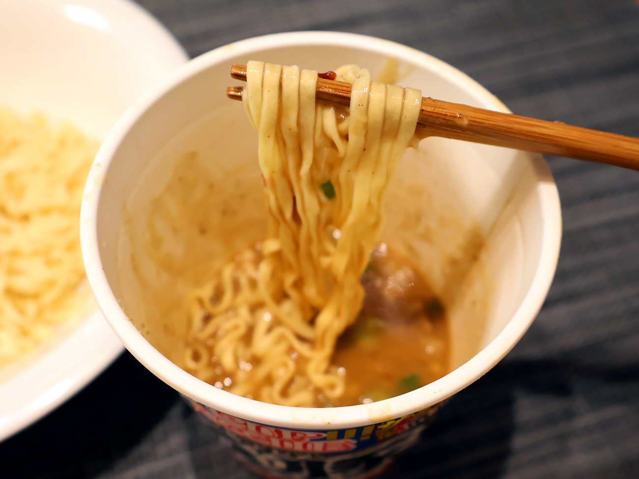 こちらを早速買って食べてみたのですが、これは感動的なウマさ! 濃厚な魚介豚骨のスープがものすごくよくできていて、しかもカップヌードル独特の麺にどっぷりと絡む。いや〜、よくできてる!