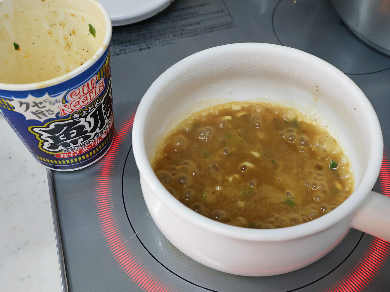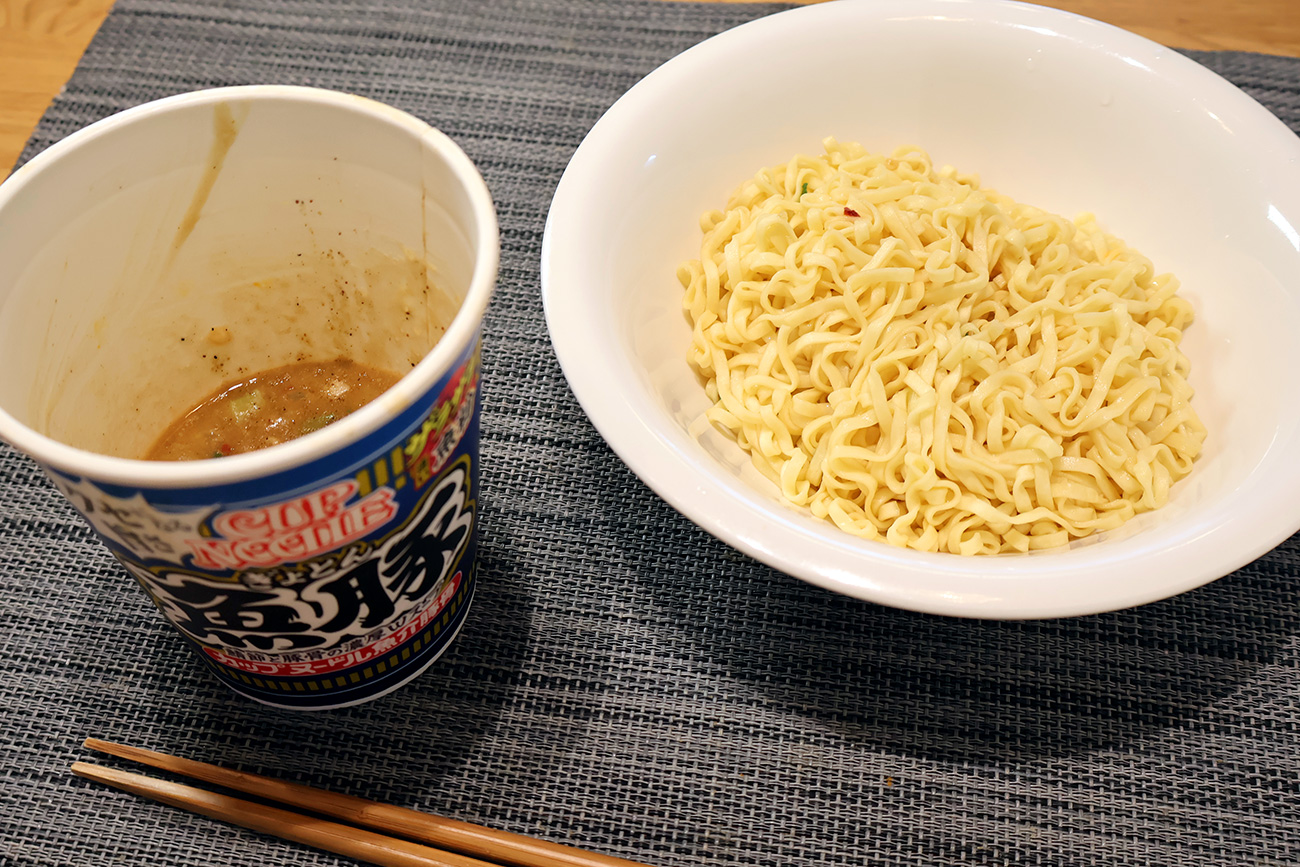 きっとここまで満足度が高くなるのも「カップヌードル 魚豚」のスープがよくできているからこそ。カップヌードルの麺じゃなくて普通の中華麺を使ってつけ麺にしても文句なしに美味しく感じられそうなクオリティでした。