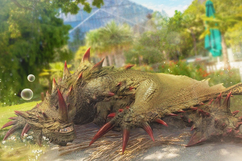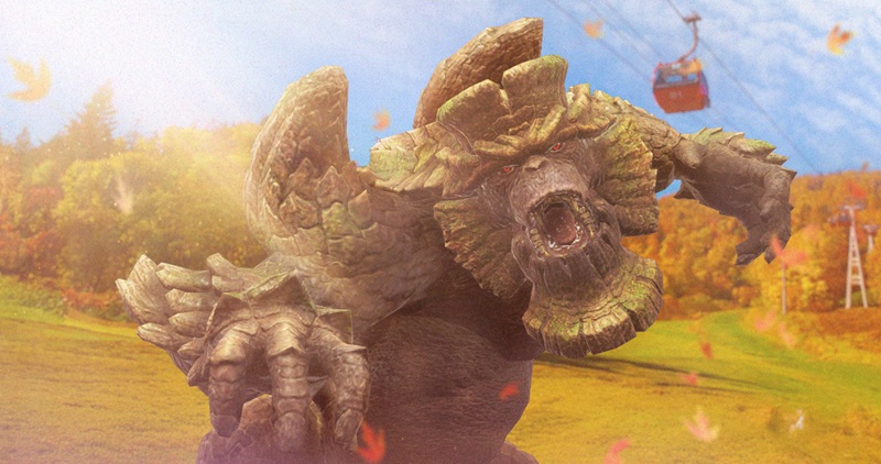 植物を体に棲まわせるという独特な共生関係を築き、植物や周囲の土砂を体液で固め体に付着物として纏い攻撃を強化する個性的なモンスター。
