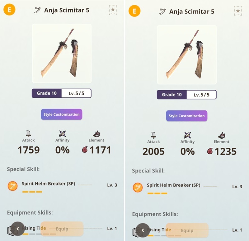 次元変異モンスターの素材を使う各レベルの強化項目(攻撃力、会心率、属性値)に関してパラメーターが大幅に上昇。