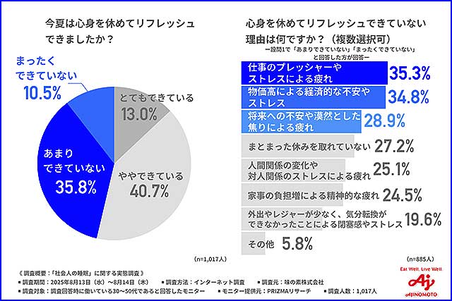 今夏約2人に1人が「心身を休めてリフレッシュできていない」と回答し、夏“休み”のはずが実際は十分に休むことができていない現状が明らかに。