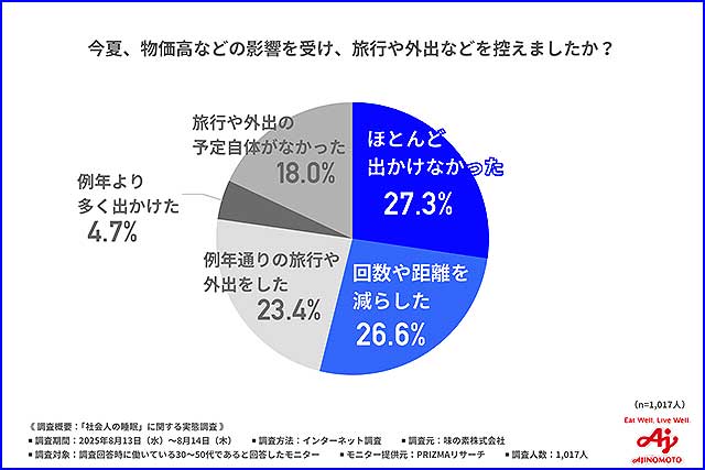 物価高などの影響を受け、旅行や外出などを控えたり、回数や距離を減らした方も約54%と半数を超え、経済的な事情での「リフレッシュ控え」の実態も明らかに。