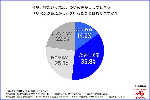 日中のストレスでつい夜更かしをしてしまう、いわゆる「リベンジ夜更かし」をこの夏に行ったことがある人は約5割という結果に。