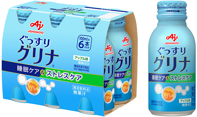 味の素 睡眠サポートサプリ「グリナ」は、睡眠ケアに役立つグリシン3000mgとストレスケアに役立つGABA100mgを機能性関与成分として配合した機能性表示食品。
