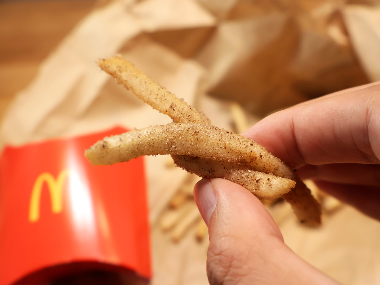 もともと塩味がついているマックフライポテトに粉末ソースをまぶしたらさすがにしょっぱくなりすぎるんじゃ……と心配しちゃう人もいそうですが、食べてみるとまったくそんなことありません。というか、使う量は味見しながら調整すればいいですし。