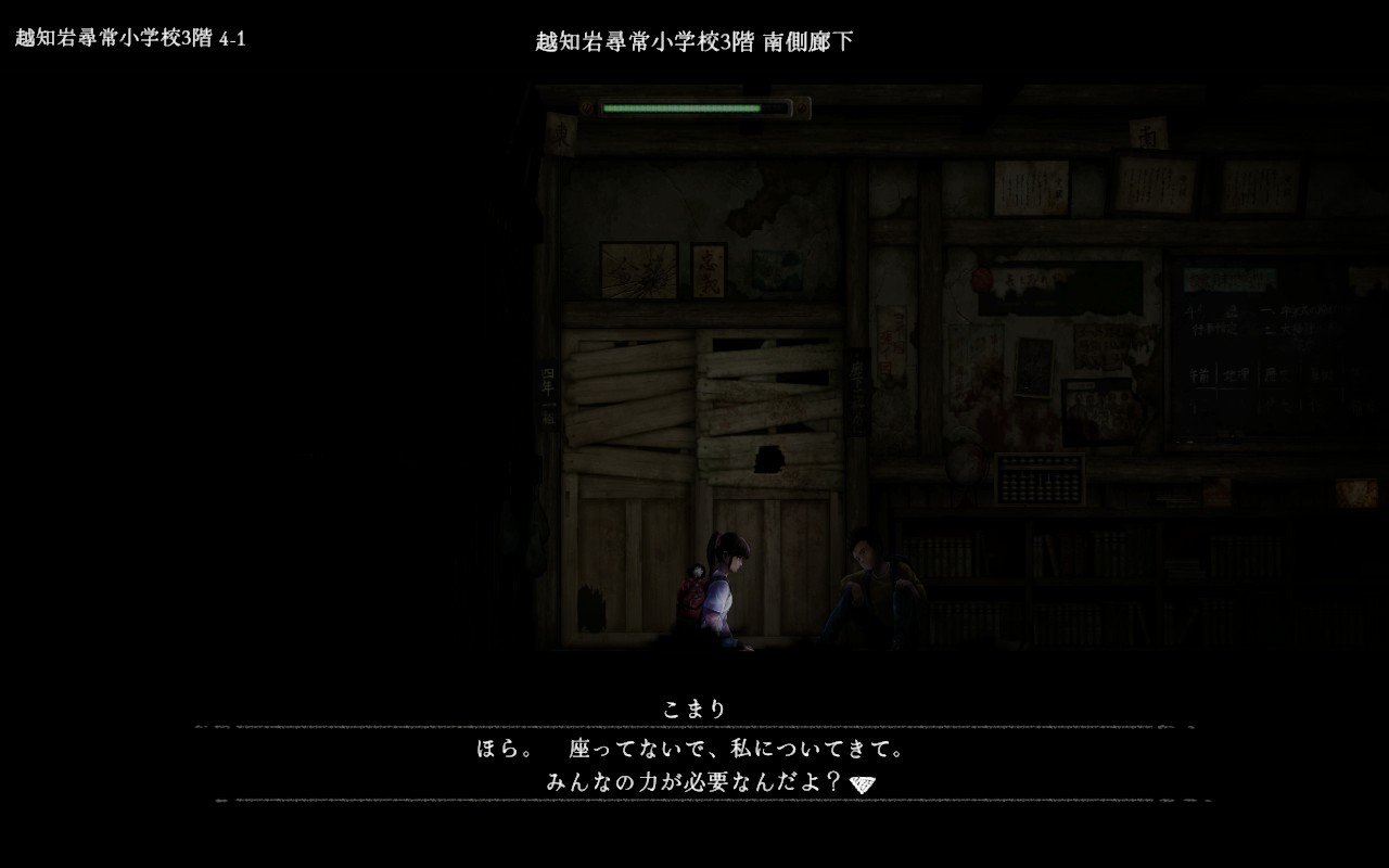 ふたつめの不満は、中盤に冗長なイベントが発生する点。本作には、仲間キャラクターの救護というイベントが存在している。舞台である廃校内で仲間を見つけたら、安全な教室まで肩を貸して移動する……というイベントだ。