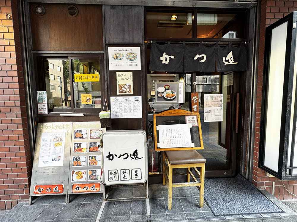 海老入りかつ重は、とんかつ系の大衆食堂「かつ進 神田鎌倉橋店」(東京都千代田区内神田2-6-4)で食べることができます。