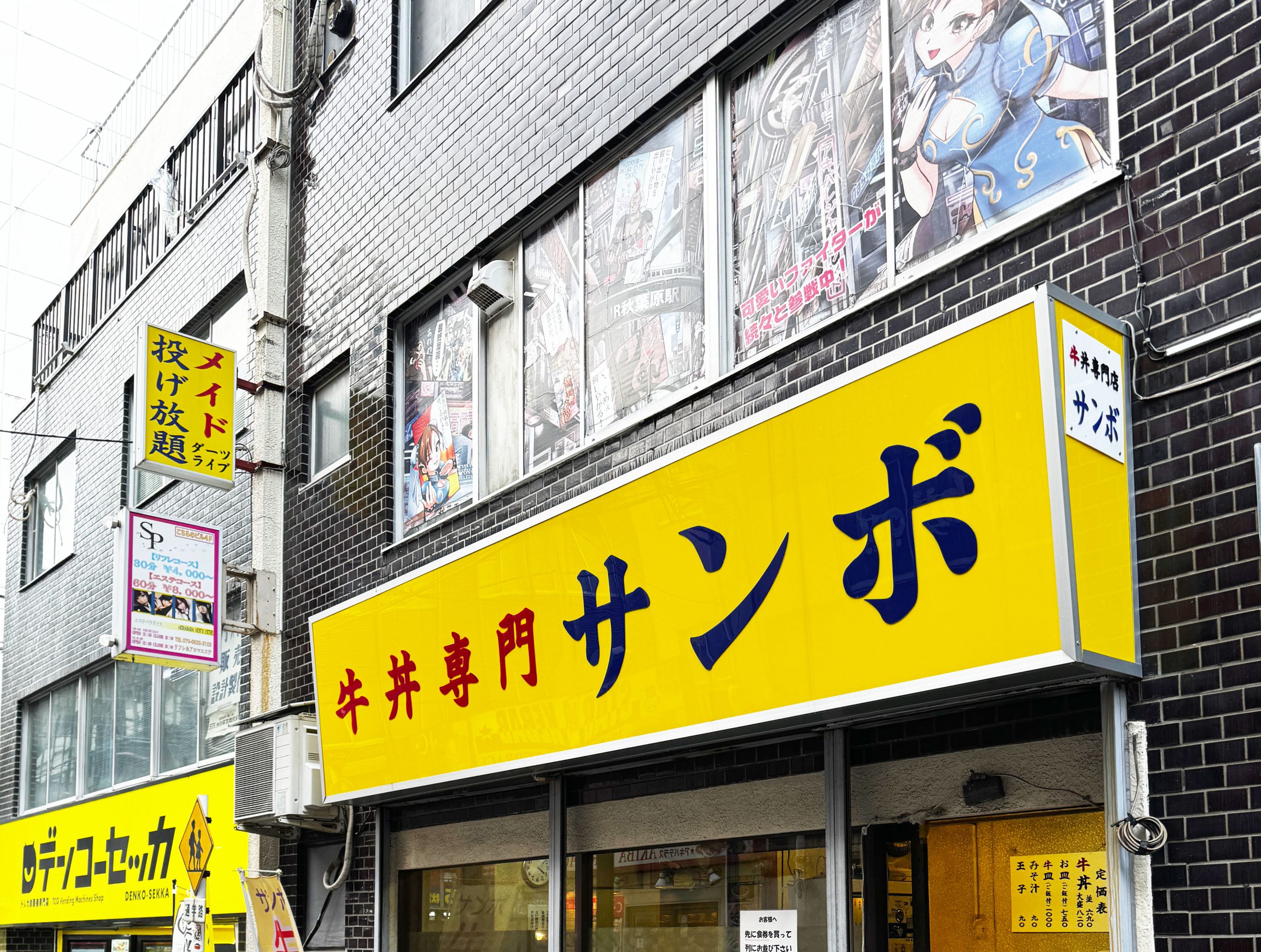 サンボといえば、皆さんは何を思い浮かべるだろうか。サンボマスター? コマンドサンボ? いろいろあると思うが、秋葉原のラボメンにとってサンボといえば「牛丼専門サンボ」(東京都千代田区外神田3-14-4)である。