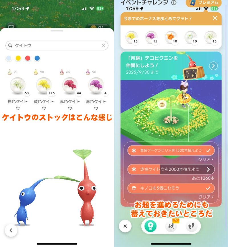 地域によって週末はあいにくの天気になりそうなので、各自無理をしない程度に1万歩のフラワーバッジやケイトウのエキスや花びらを狙ってほしい。