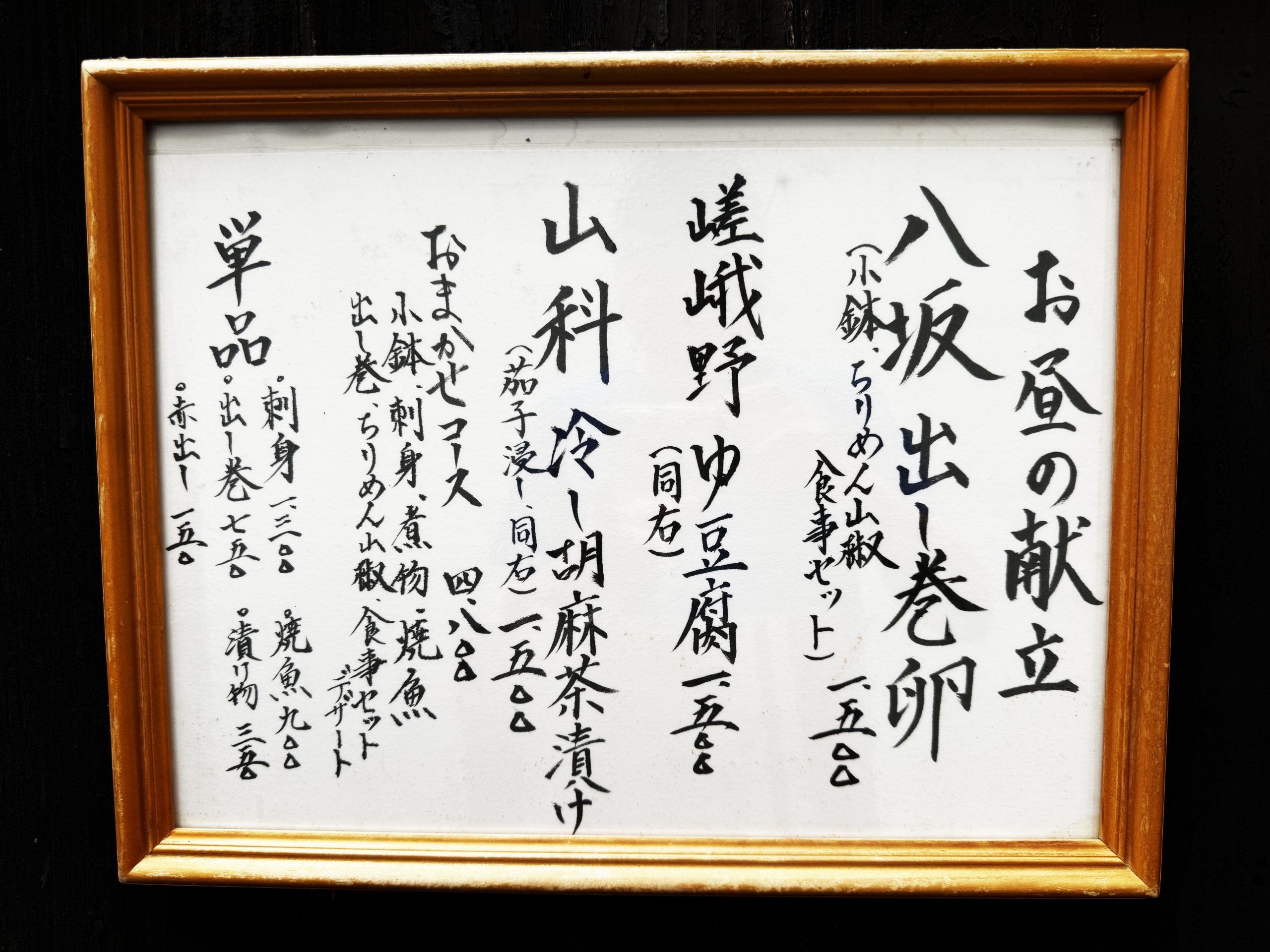 出汁巻き玉子の正式名称は「八坂出し巻卵」(1500円)で、小鉢、ちりめん山椒、ご飯、味噌汁がセットになっている。