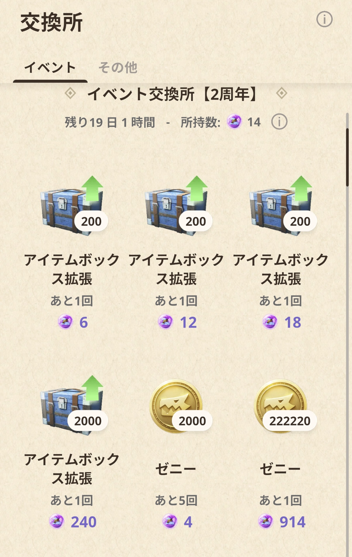 9月28日までオープンしている「交換所」では、アイテムボックス拡張が実質無料で行えます。