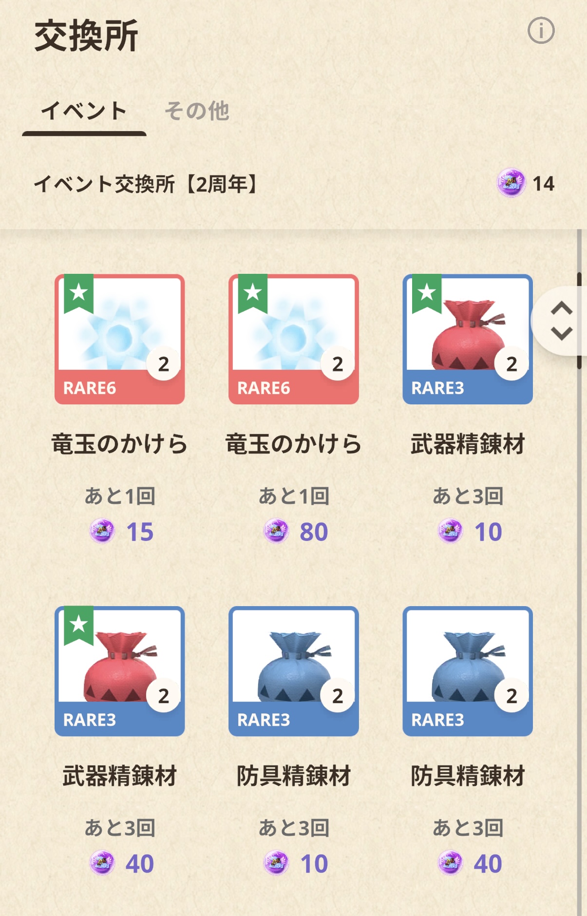 ▲ちなみに、「竜玉のかけら」や「武器精錬剤」なども交換可能となっています。