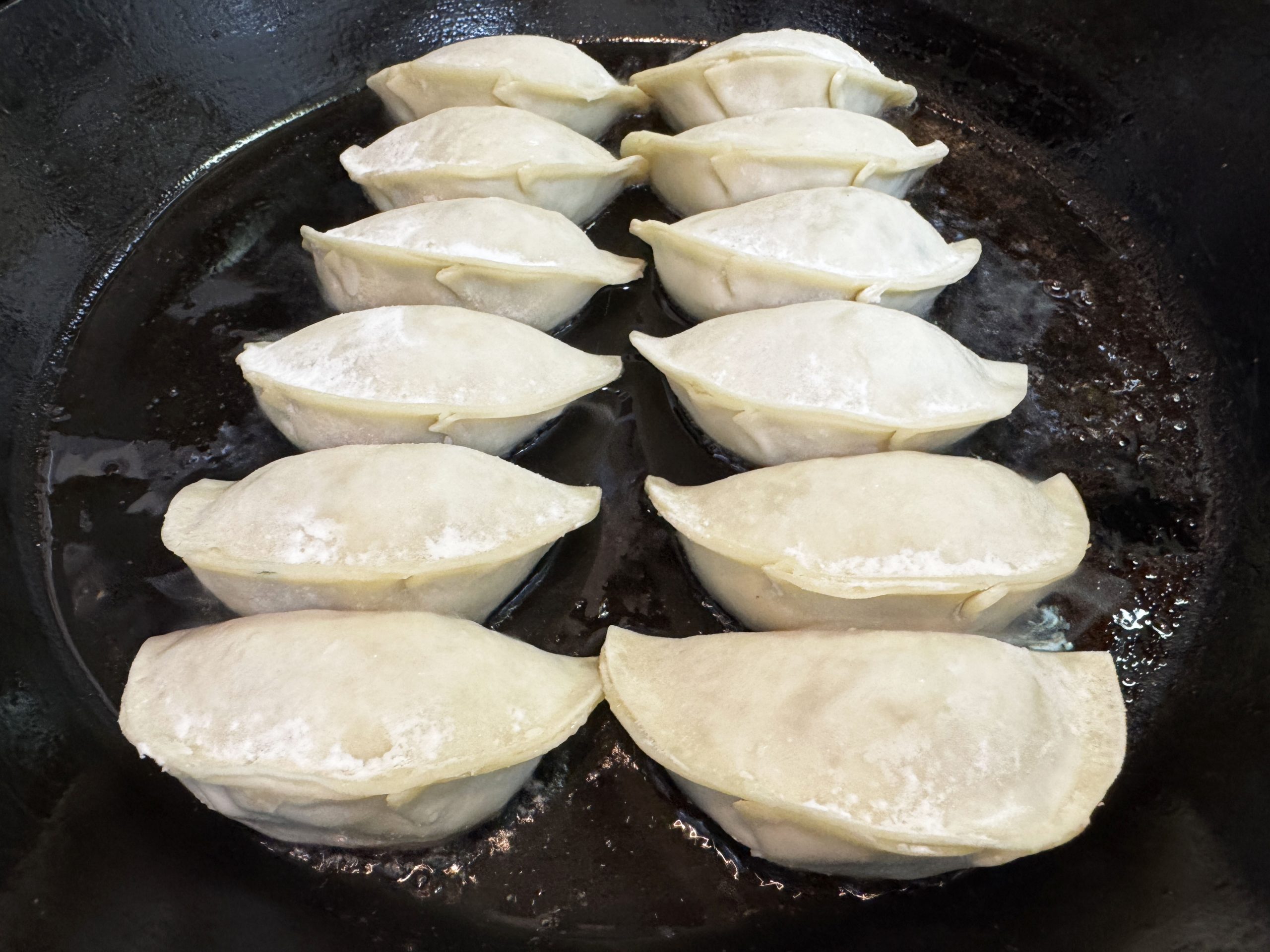 作り方はカンタン。フライパンに油をしき、餃子を並べ、水分をくわえて蒸し焼きにするだけ(詳細レシピはパッケージに記載あり)。意外と簡単に焼けた。