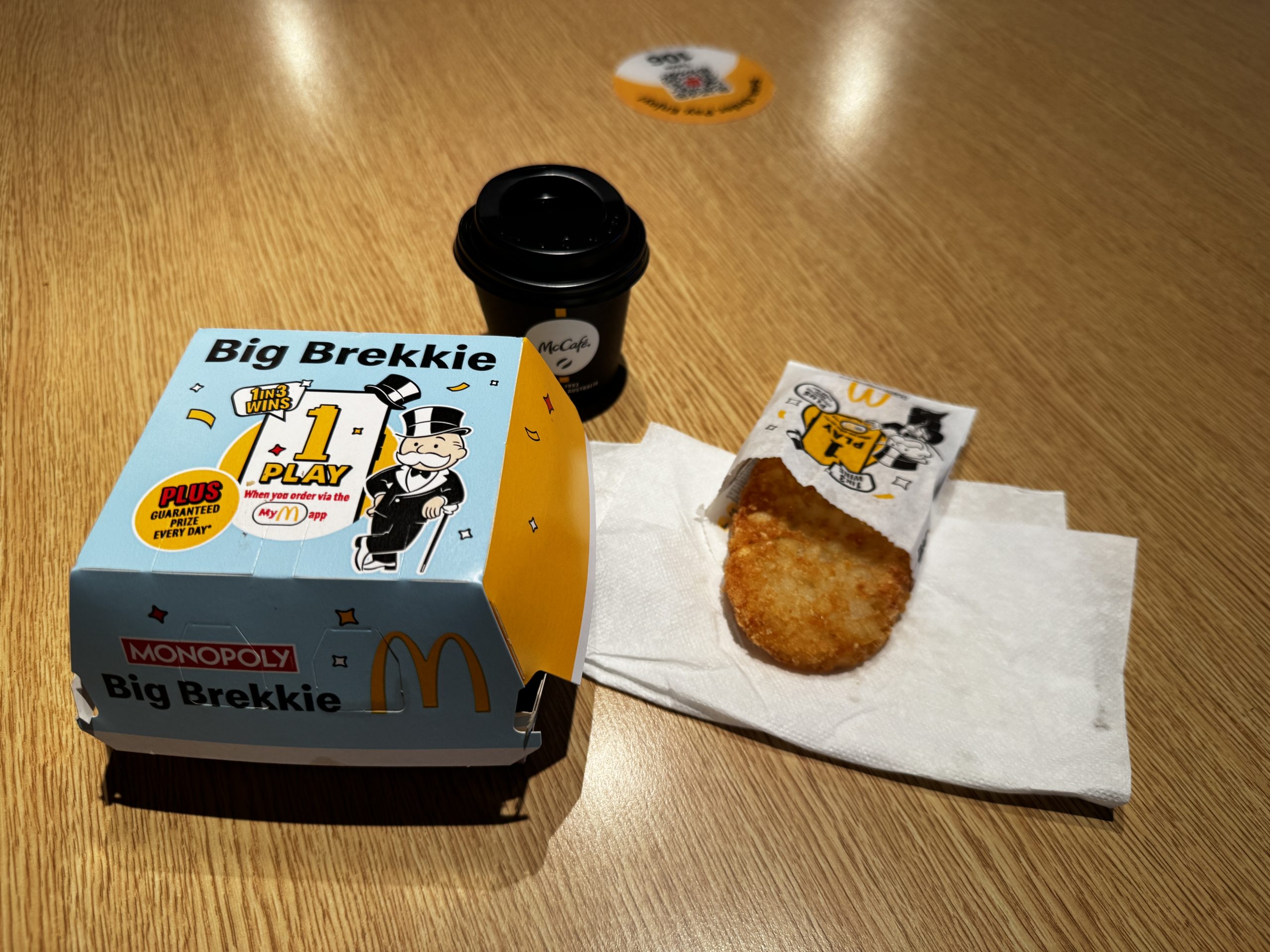オーストラリアのマクドナルドにも朝マックがあります。定番のマフィン系もありますし、なんなら、朝からグランドメニューも食べることができます。いつでも食べたいメニューが食べられるのは嬉しいものです。朝は朝マックオンリーではなく「朝マック+グランドメニュー」というのが、オーストラリア・マクドナルドの営業方針のようです。たぶん。