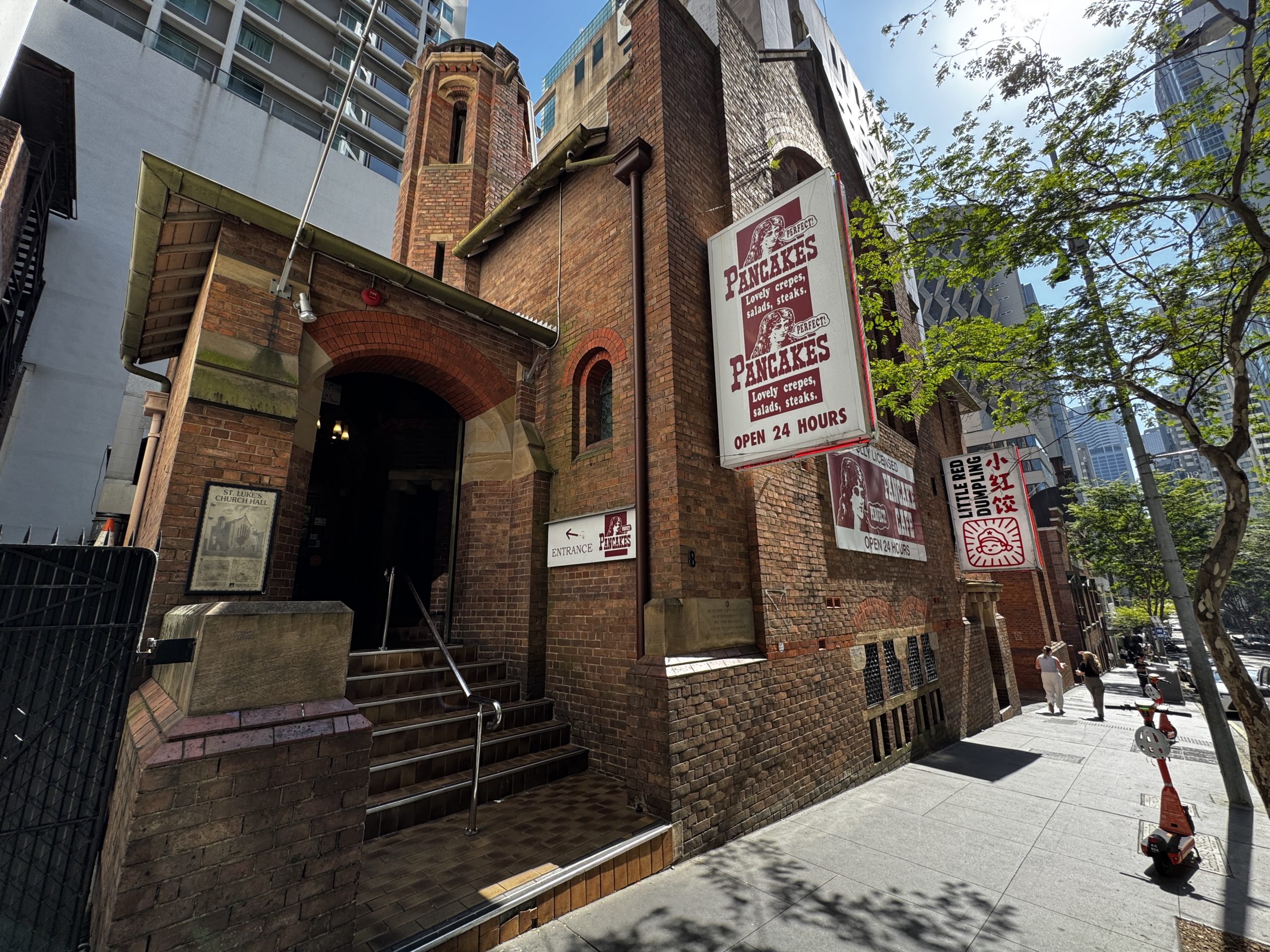 歴史は120年以上前! 1904年にレンガで作られた教会は、1979年にパンケーキ屋「パンケーキマナー」(18 Charlotte St, Brisbane City QLD 4000)となり、いまも愛され続けているのである。教会として建てられたのにパンケーキ屋になるとは驚きだ。