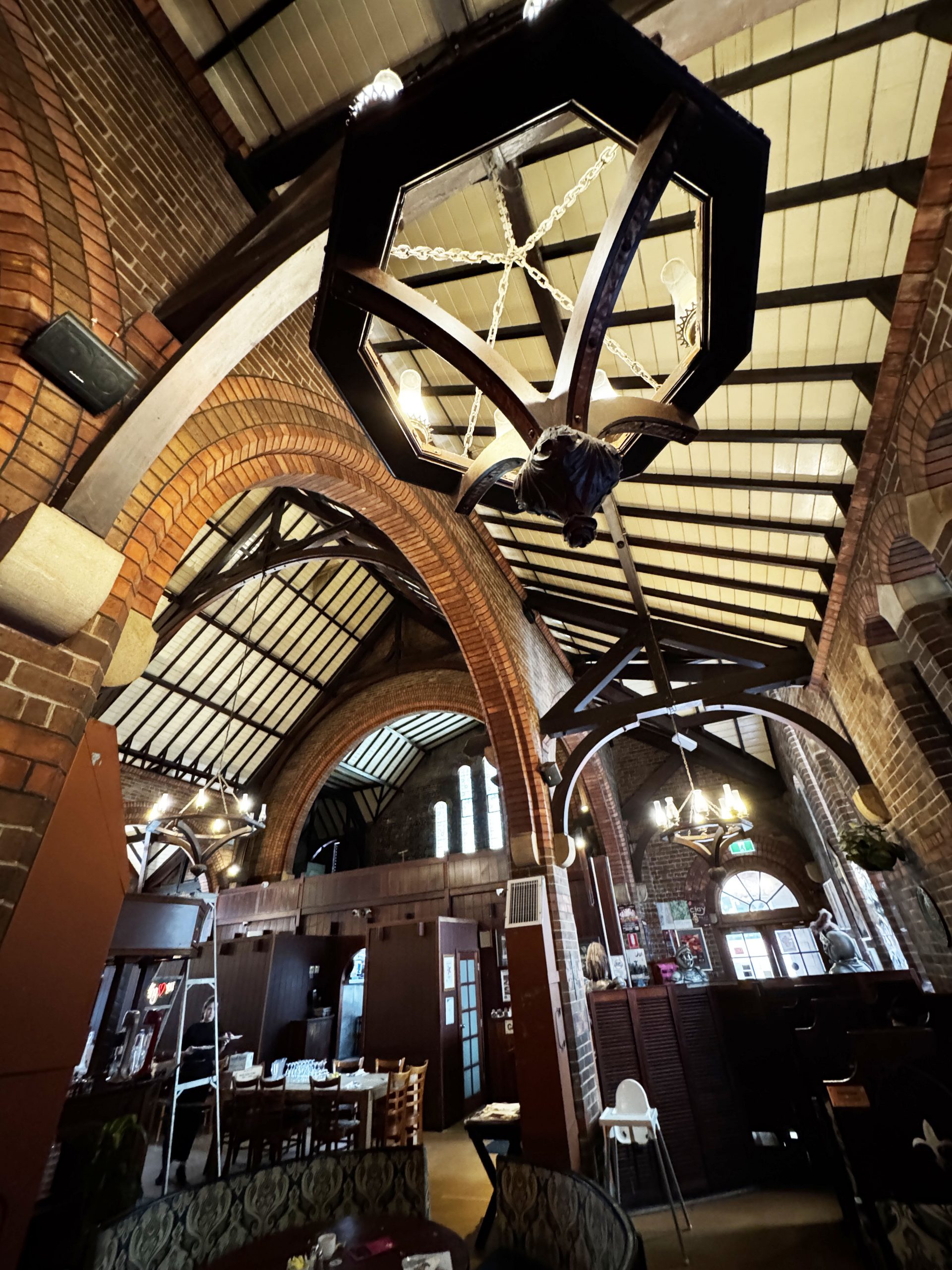 店内に入ると、確かに教会! 教会について全く知識はないが、こういう雰囲気ならばパイプオルガンや悪魔や天使の像があってもおかしくはない。