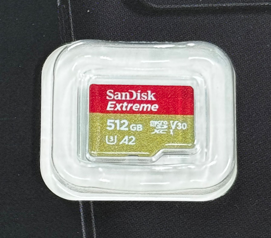 筆者は、長期の海外旅行のため、256GBのSDカードでは足りないと感じ、512GBのものを探した。公式発表のスペック条件に沿って探し、「SanDisk Extreme SDSQXAV-512G-GN6MN」をAmazonで購入した。