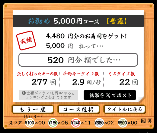 これはタイピングサイト寿司打で己のタイピング能力を測ったときのスコアなんですが、基準にすら達してなくてびっくりした。こんなに遅くなるもんかね。もうちょっとやれてもおかしくないであろう、なんて思わず、マイタイピングというタイピングサイトで基礎の基礎から練習することにした。