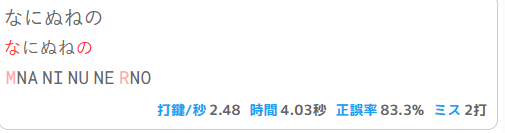 「なにぬねの」を打つのに4秒かかっていた。うそだと言ってくれよ。タイピングのことよく知らないけど、遅いということはわかる。ここから練習していくか……