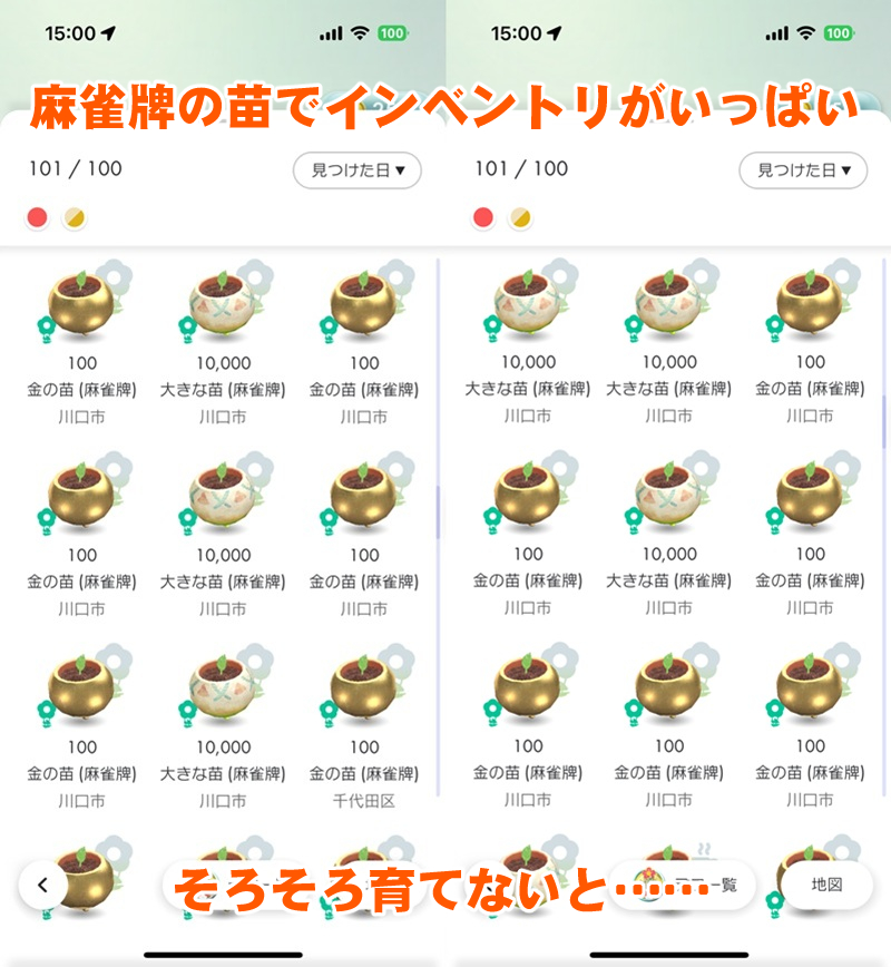 ちなみに、麻雀牌の苗はいまだひとつも育てておらず、手元に41個もキープしている状態だ。