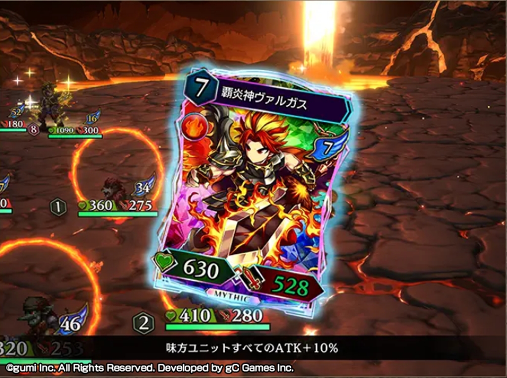 お手軽で爽快なだけではなく、戦略の奥深さが楽しめるシステムが「降臨ドロー」。同作のバトルでは、中盤(3ターン目)と終盤(5ターン目)に、ステータスとスキルが大幅に強化された「降臨ユニット」が自動ドローされる。「ブレイブバースト」や「降臨ドロー」といったシステムをどう駆使するか……熱い心理戦が楽しめそうだ。
