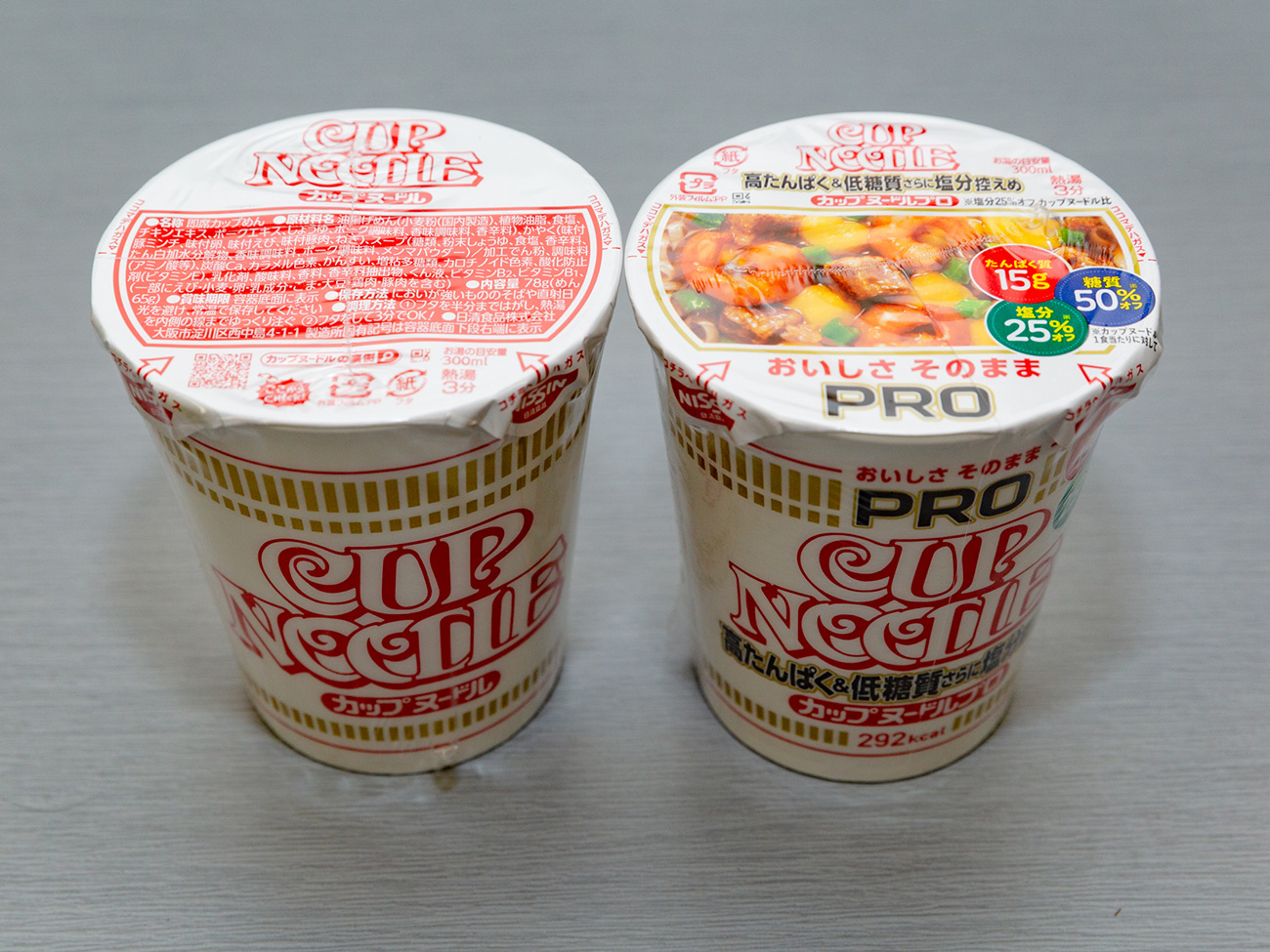 特に注目すべきは「カップヌードルPRO」。かつては塩分を少なくした「カップヌードルソルトオフ」と高たんぱく&低糖質の「カップヌードルPRO」に分かれていましたが、最近になってこの2種が合体。高たんぱく&低糖質でありながら、塩分も25%オフとなり、まさにプロ中のプロへと進化しました。