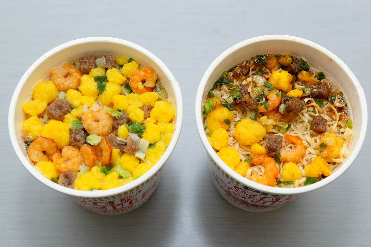 以前は麺の質感などにもっと明確な違いを感じた気がしますが、2つを同時に作って食べ比べをしてみても、違いがハッキリしているのは具の量くらい。スープが少しスパイシーな気がするくらいで、目隠しして食べたらどっちがどっちかを当てるのも難しいレベルなのです。