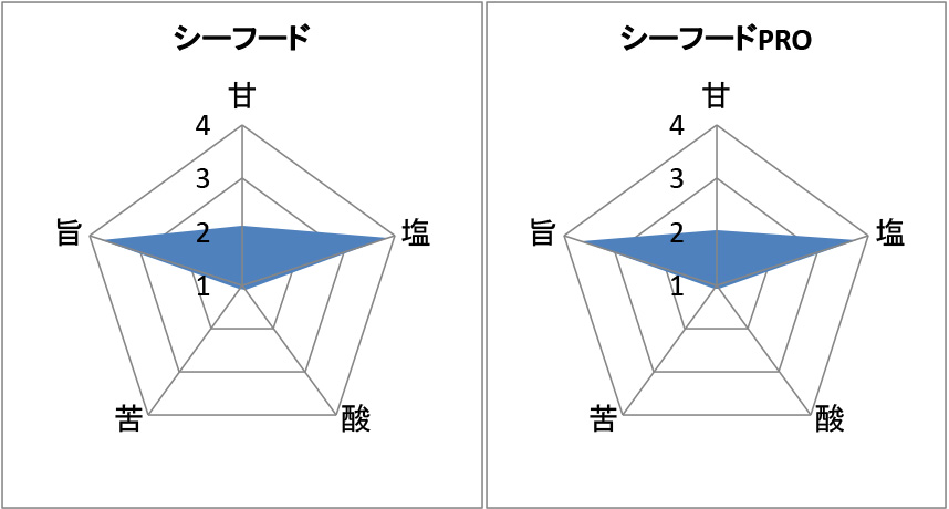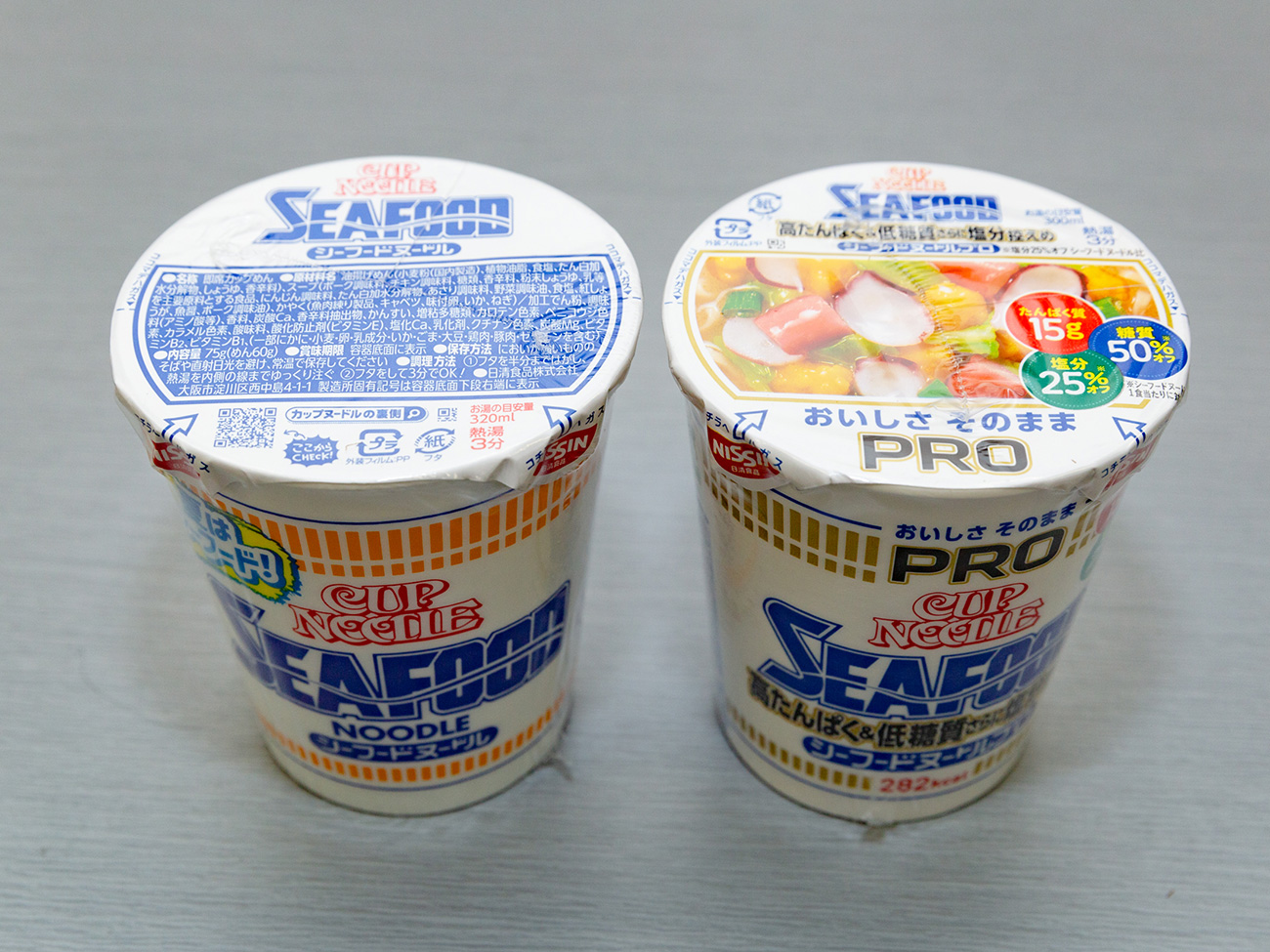 ついでにシーフードヌードルとシーフードヌードルPROの比較検証もしてみたのですが、カップヌードルと同様にいつものとPROに味の差はほぼありませんでした。