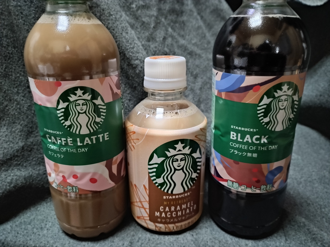 その前に9月から発売されているペットボトル入りコーヒーの新シリーズ「スターバックス COFFEE OF THE DAY ブラック」「同 カフェラテ」からレビューする。旅に持ち出すにはちょうどよい450mlペットボトル入りコーヒー飲料だ。