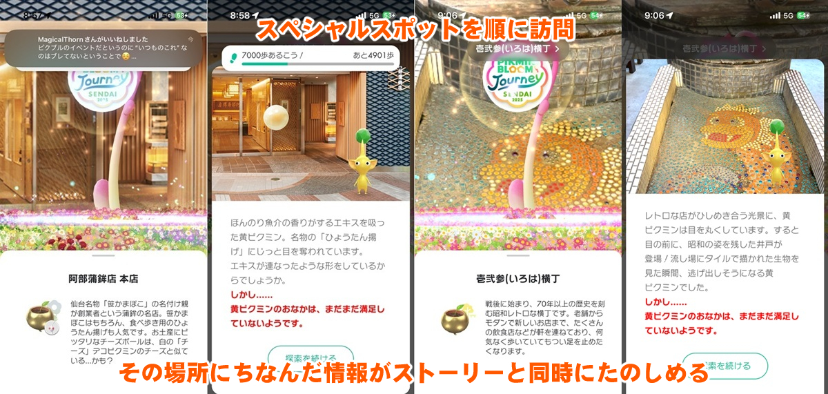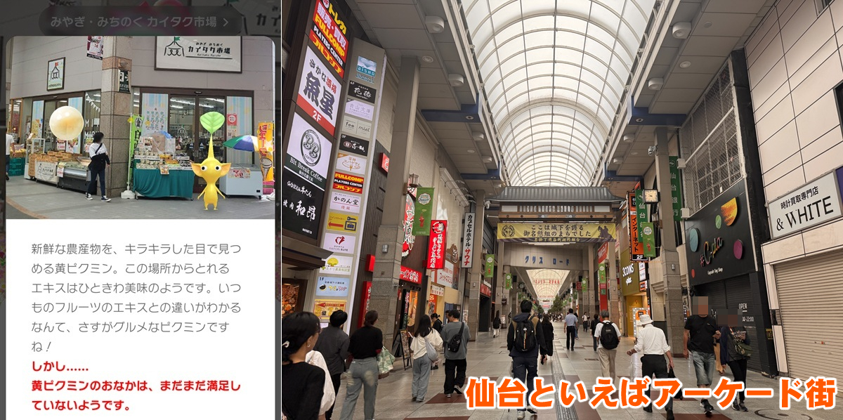 ピクミンたちといっしょに仙台の魅力に触れる、仮想と現実の世界がリンクした街歩きを体験することができた。