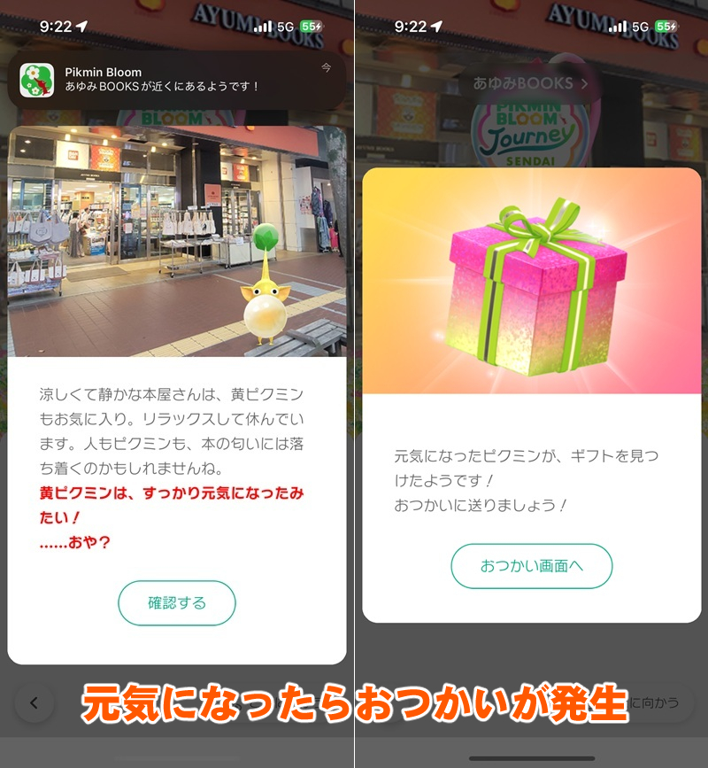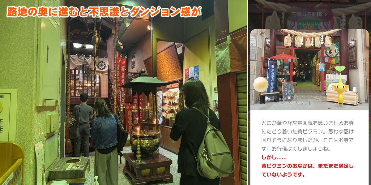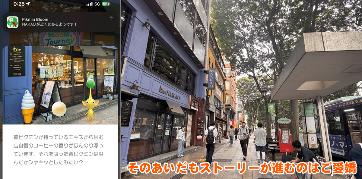 花壇にはアクリルスタンド風のピクミンが潜んでいたりと現実世界にも興味を引かせる仕掛けも充実。