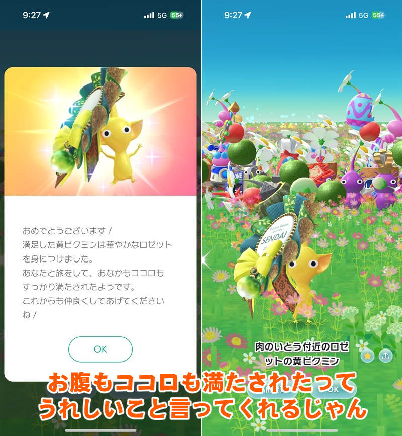よほどお腹が空いていたようで、序盤は全然満足してくれていない様子の黄ピクミン。