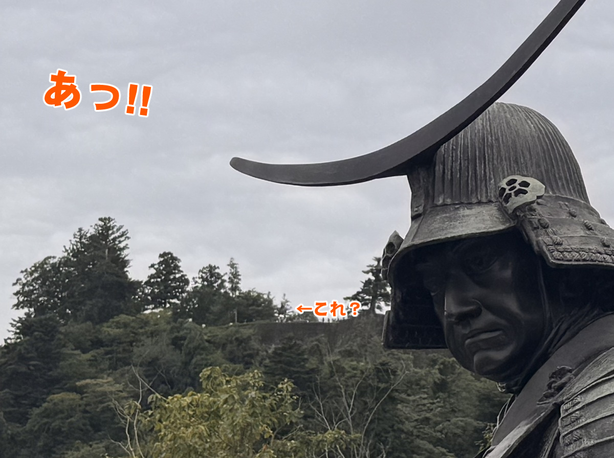 単純にかっこよく撮れるアングルなのかと思ったら、その奥にそびえる仙台城跡に設置されたみなさんご存知、馬に乗った伊達政宗公騎馬像がかすかに……