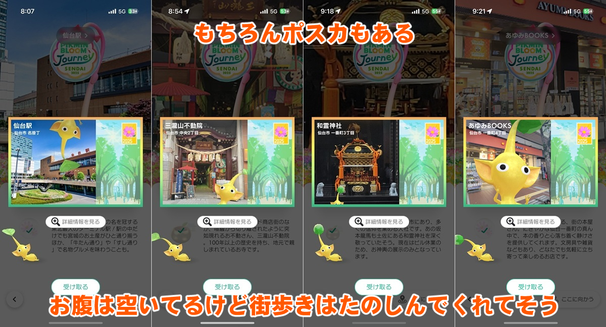 各所にちなんだデコピクミンの苗や特別なポストカードを求めて仙台駅から国際センター駅までの広域を散策した。