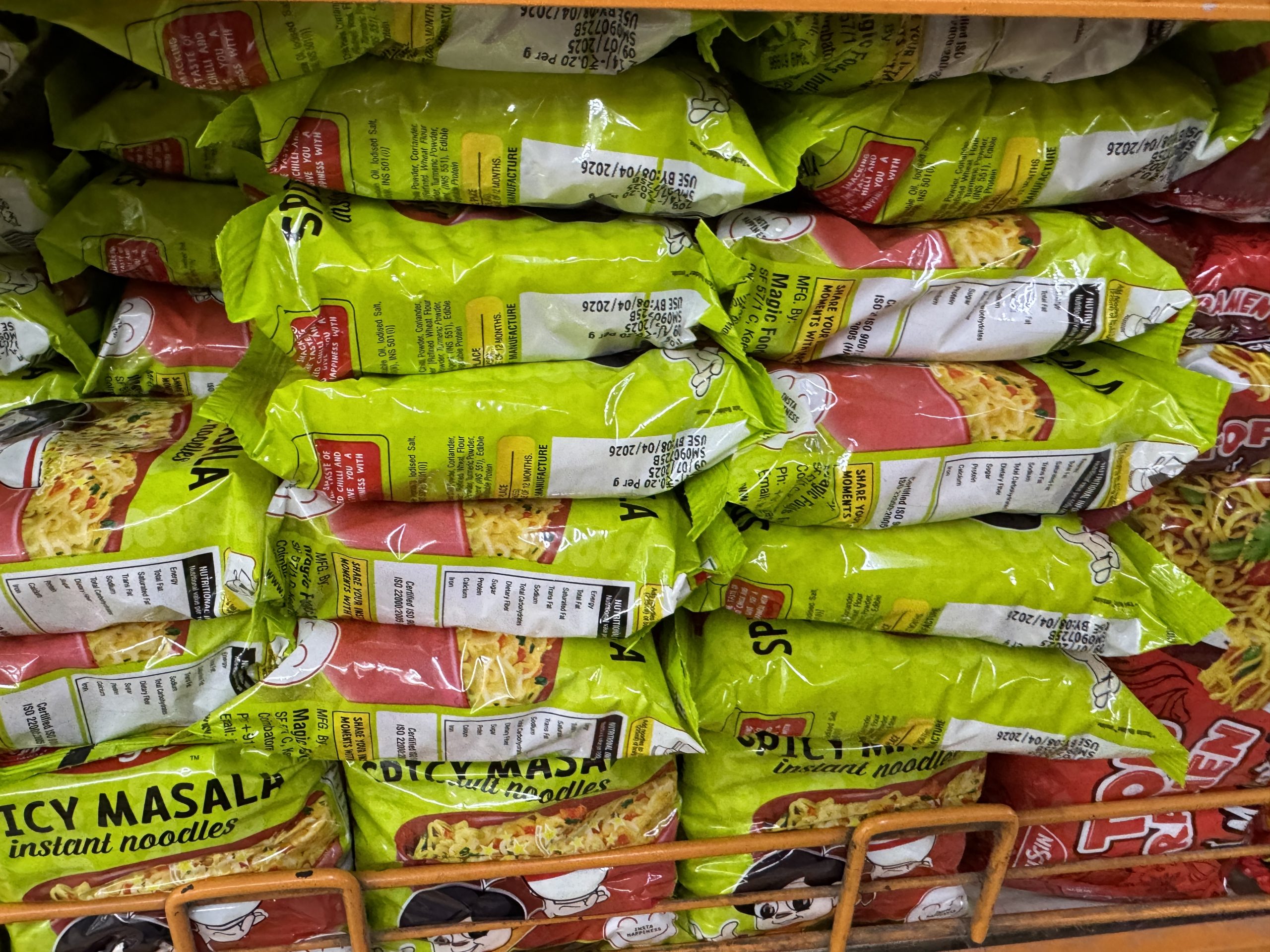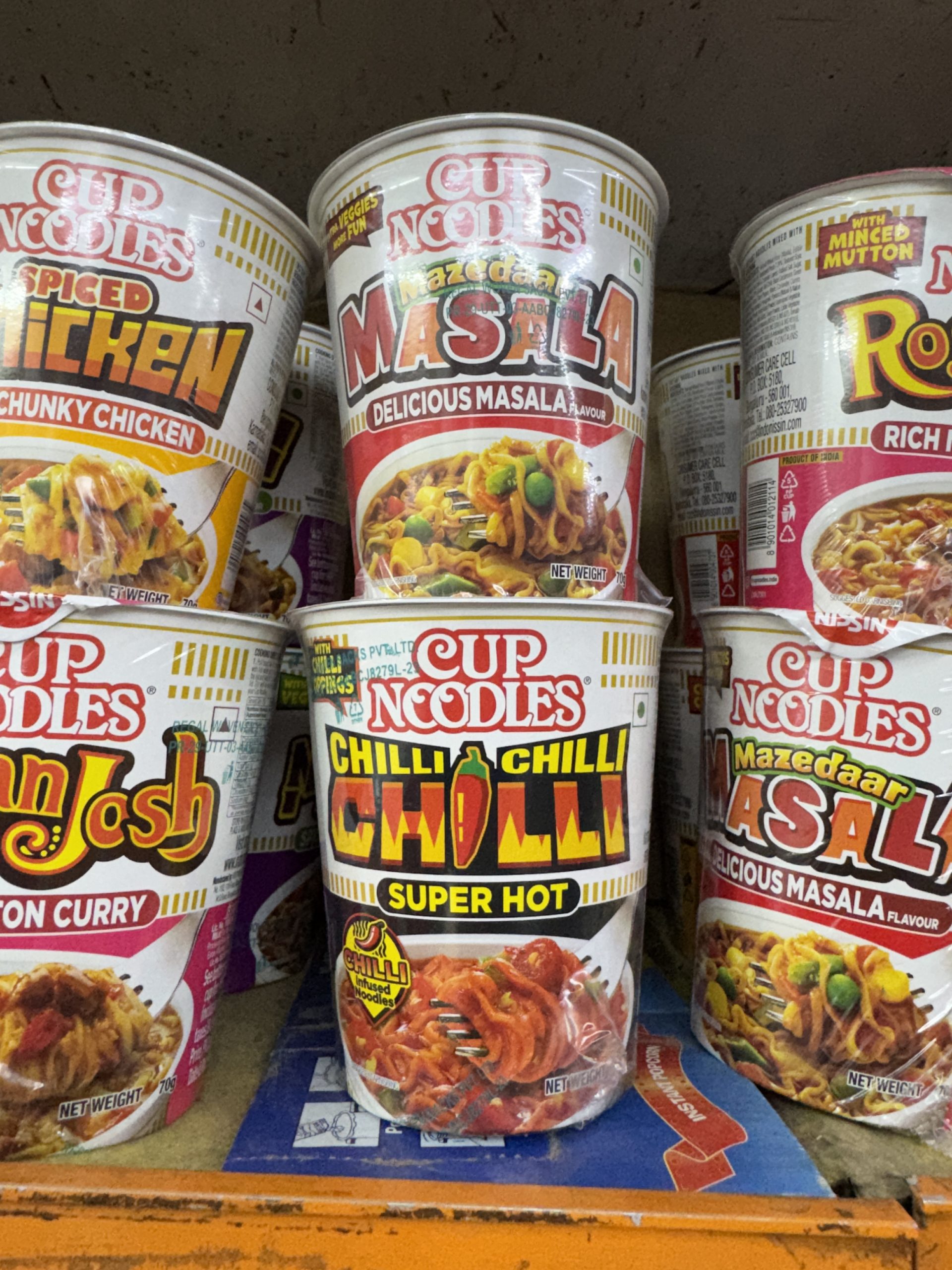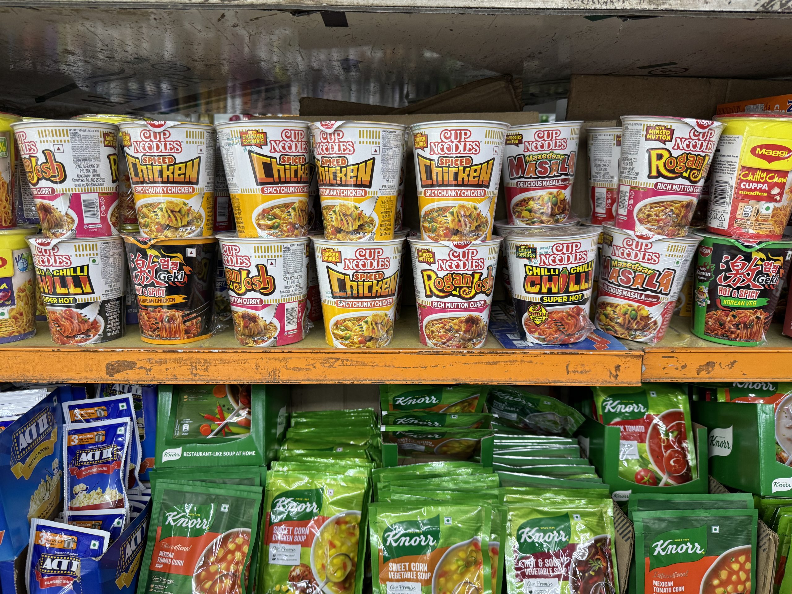 実際にインドのスーパーマーケットに行ったところ、カップヌードル以外のインスタントラーメンも無数に売られていました。確かに、なかでもカップヌードルが人気のようです。