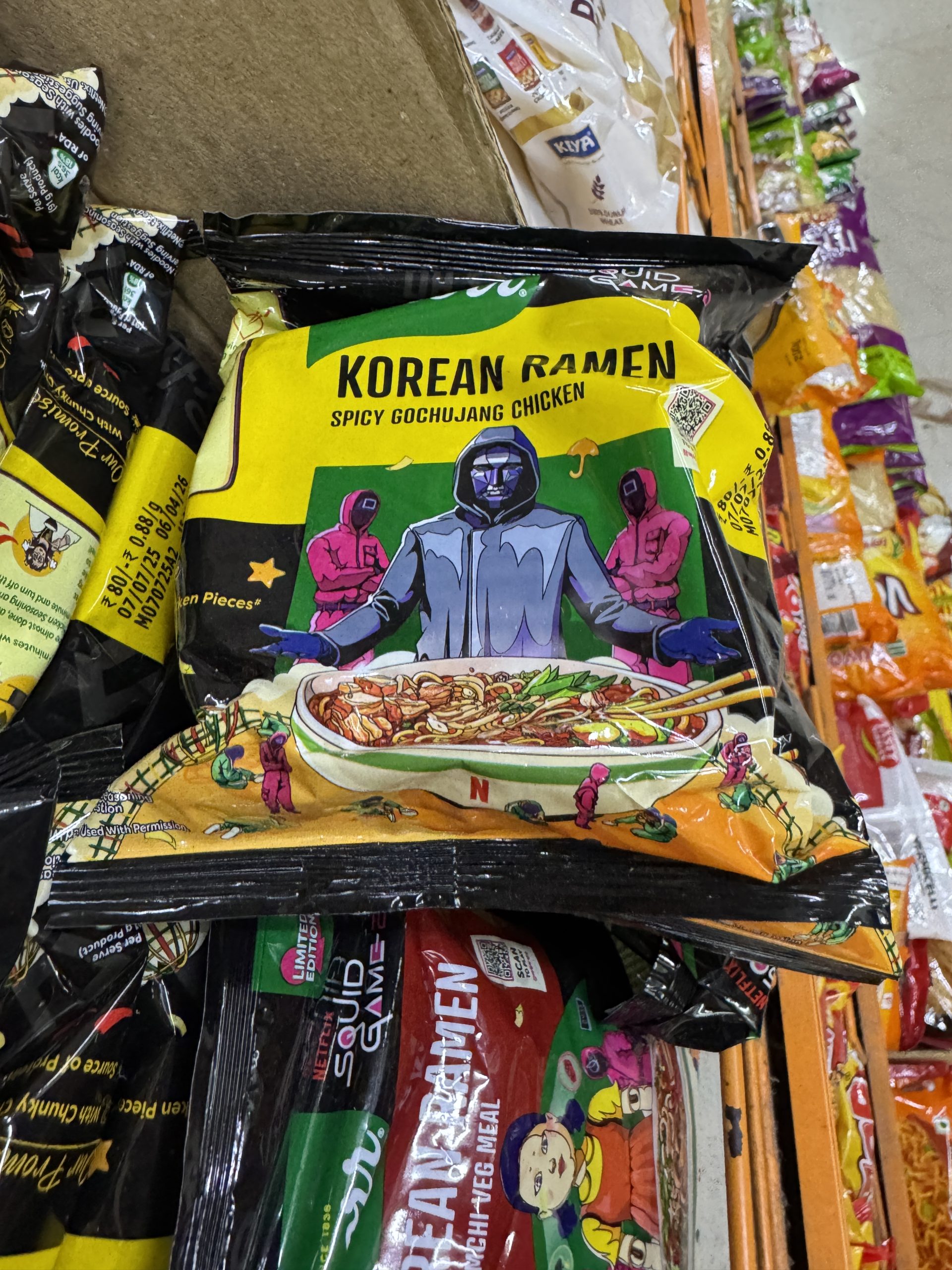 韓国系のイカゲームラーメンや激辛ラーメンなども売られていましたし、インドオリジナルの袋麺もたくさん売られていました。インド人の皆さんは本当にインスタントラーメンが好きなのですね!