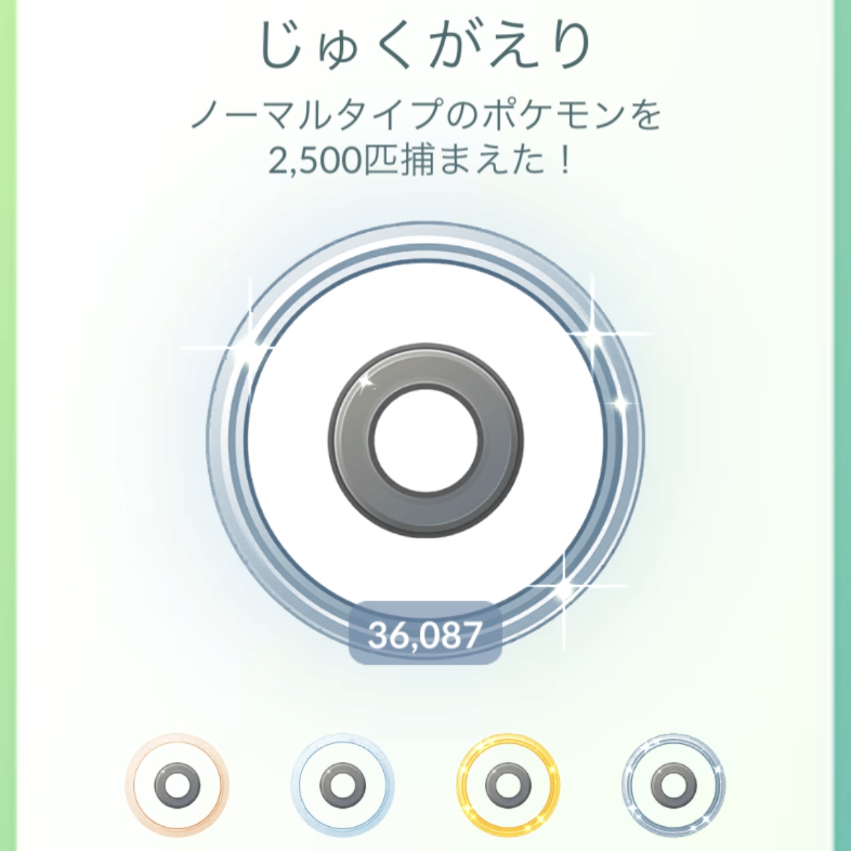 ▲あとは特定タイプのポケモンを2500匹ゲットする“じゅくがえり”などのタイプ別に用意されたメダルの中から、プラチナ達成が近いものを選ぶのもおすすめです。