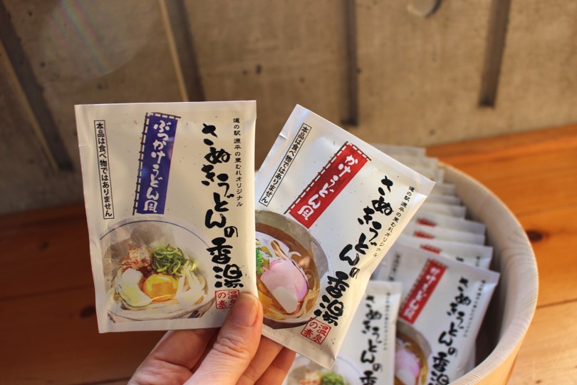 香川県高松市にある「道の駅 源平の里むれ」で販売されている「さぬきうどんの香湯」という入浴剤は、“讃岐うどんの出汁の香りと色味を再現した道の駅オリジナルの温泉の素”だといいます。