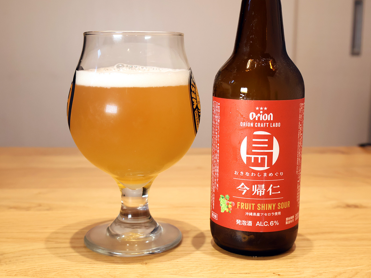 「今帰仁」はクラフトビール界隈で最近流行っているサワービール。沖縄県産アセロラ果汁が使われていて、ビールというよりもスパークリングワインに近いような爽やかさや酸味が感じられます。